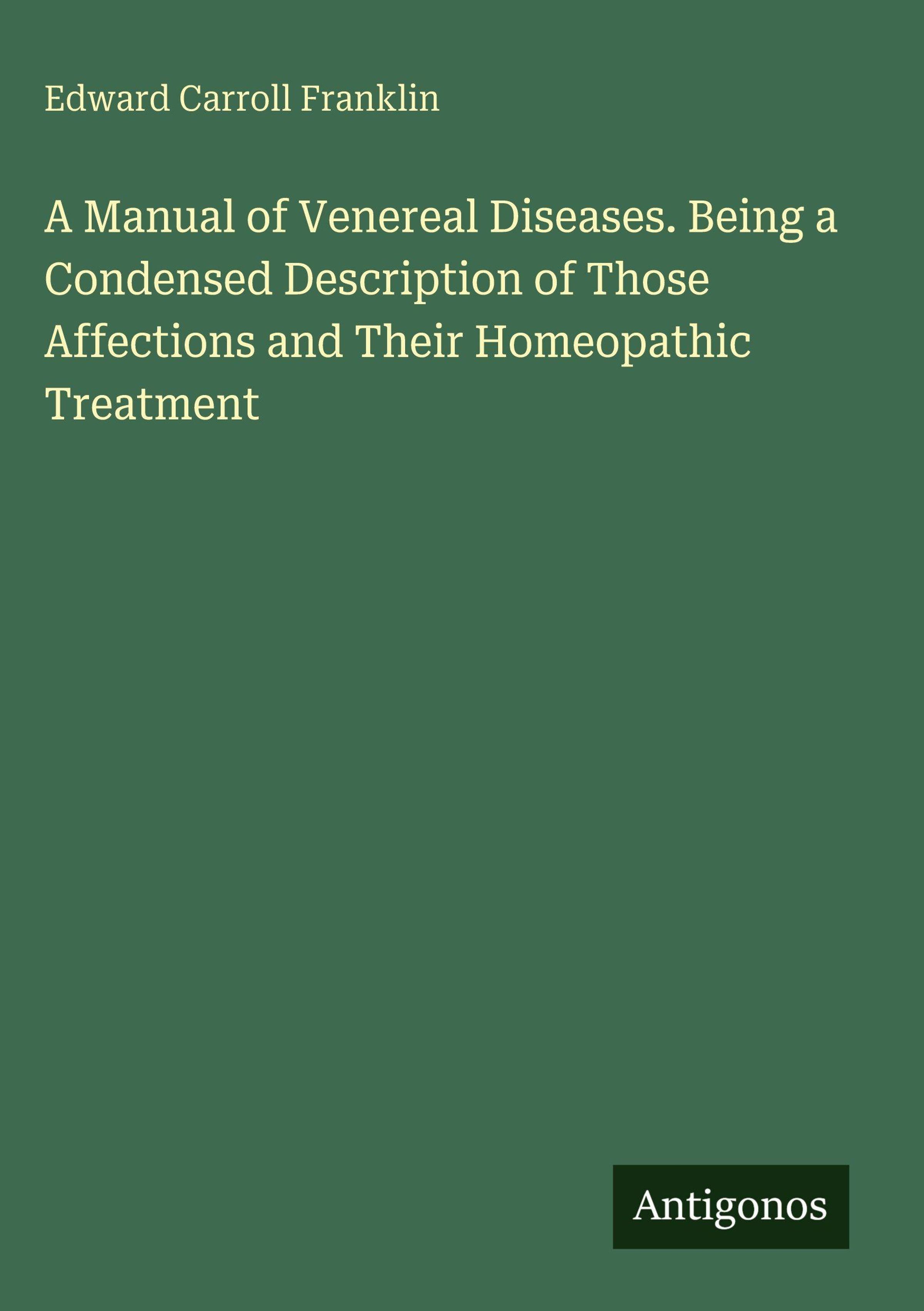 Edward Carroll Franklin: A Manual of Venereal Diseases. Being a Condensed Description of Those Affections and..., Gebunden