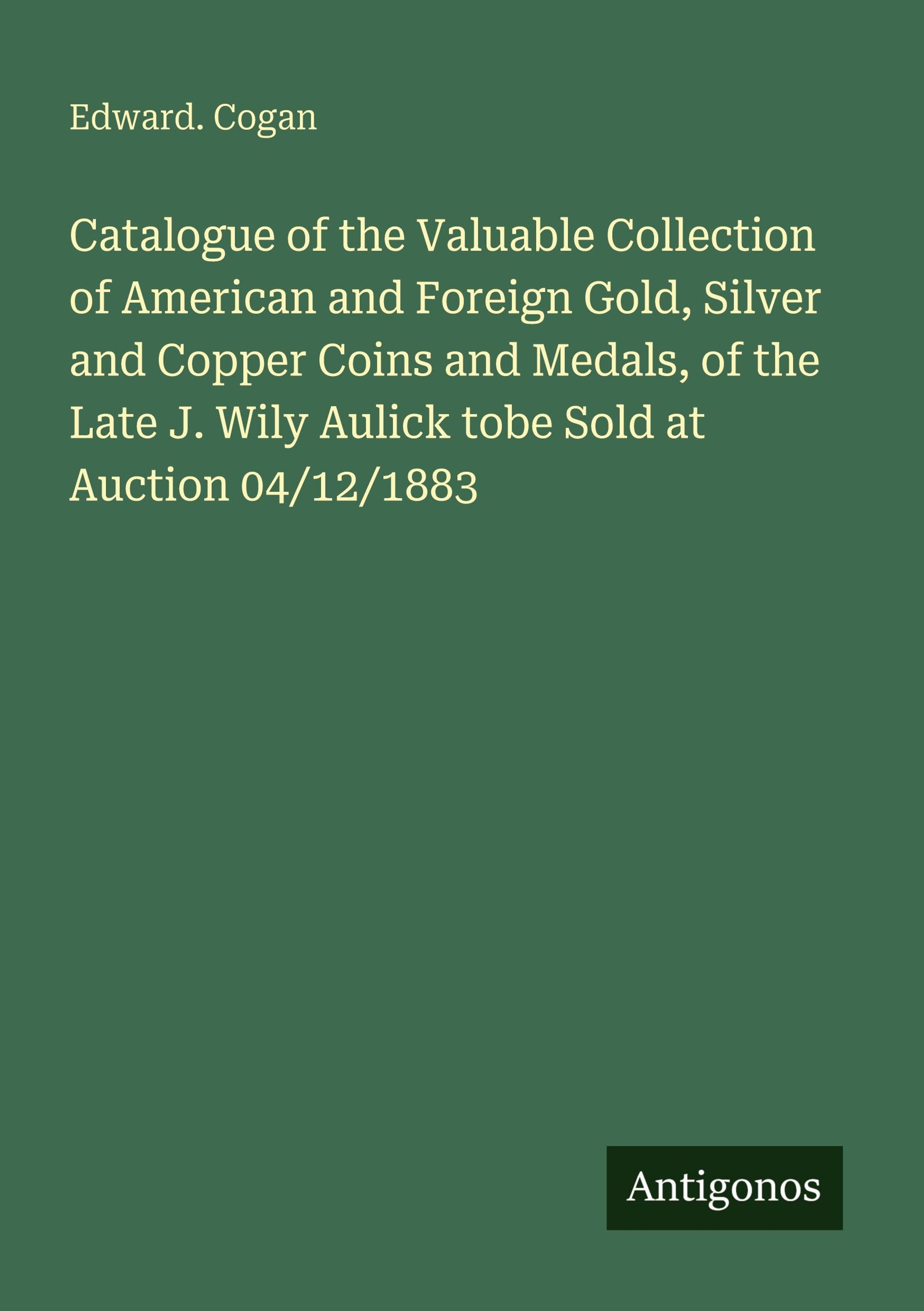 Catalogue of the Valuable Collection of American and Foreign Gold, Silver and Copper Coins and Medals, of the Late J. Wily Aulick tobe Sold at Auction 04/12/1883