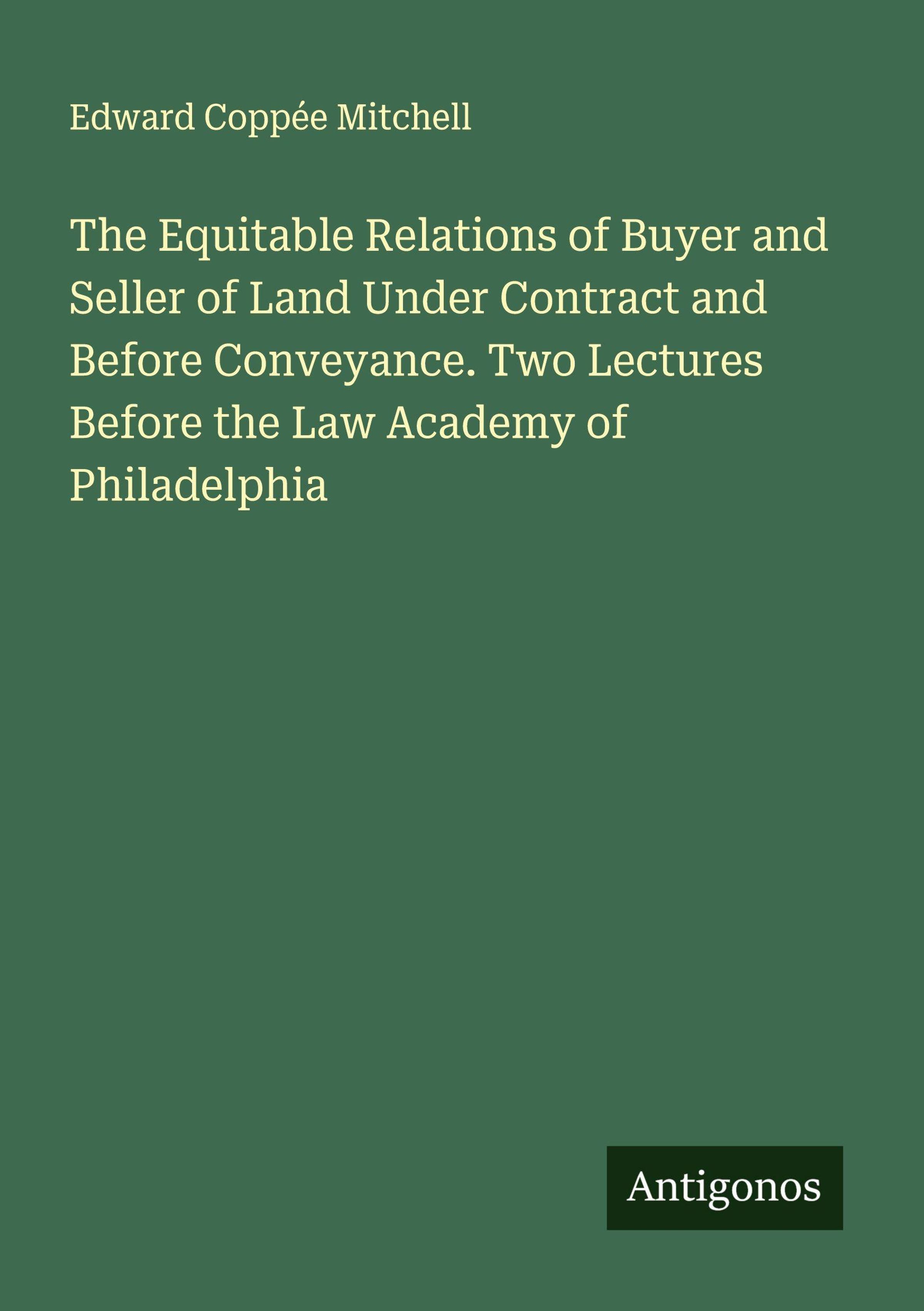 The Equitable Relations of Buyer and Seller of Land Under Contract and Before Conveyance. Two Lectures Before the Law Academy of Philadelphia