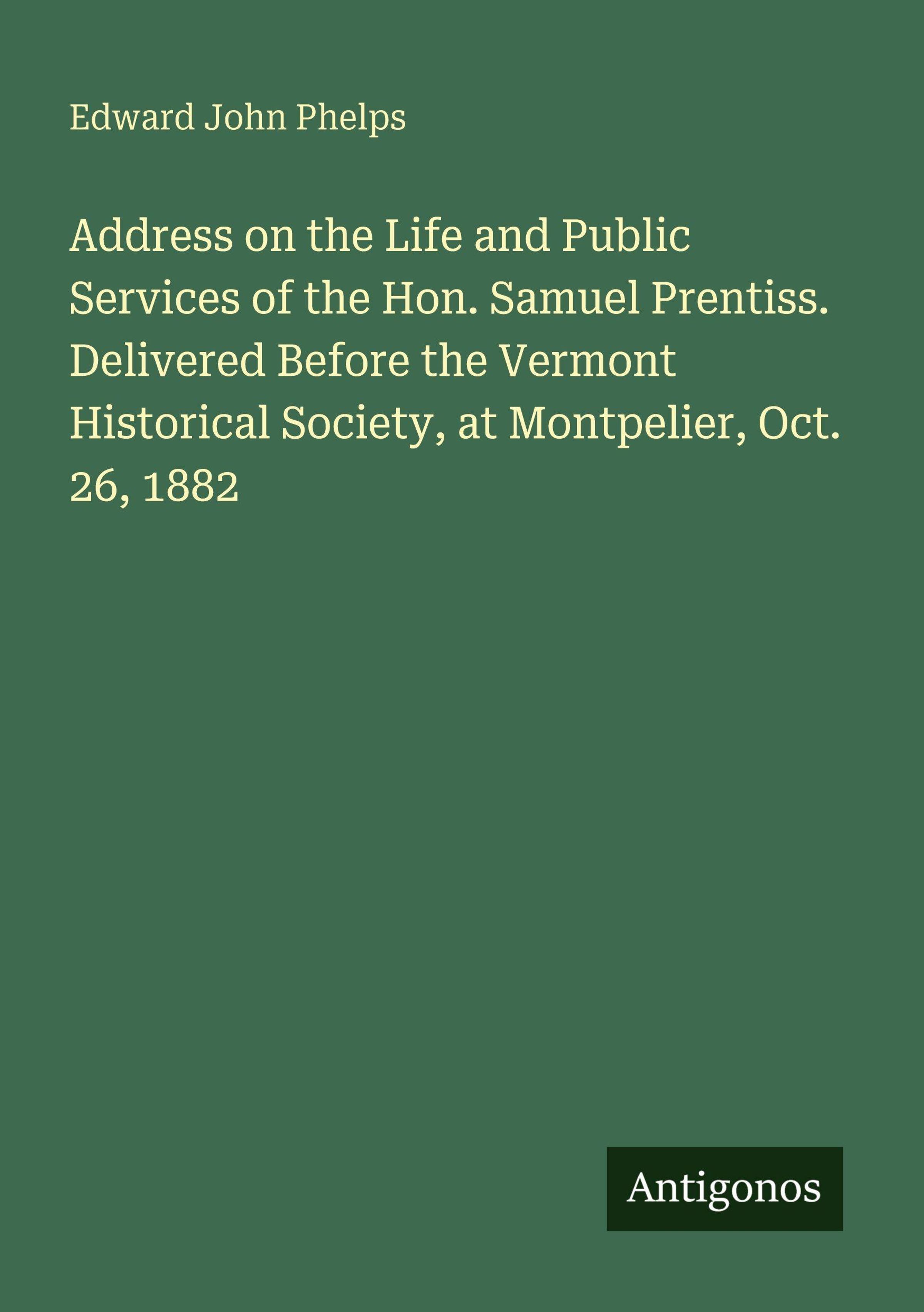 Address on the Life and Public Services of the Hon. Samuel Prentiss. Delivered Before the Vermont Historical Society, at Montpelier, Oct. 26, 1882