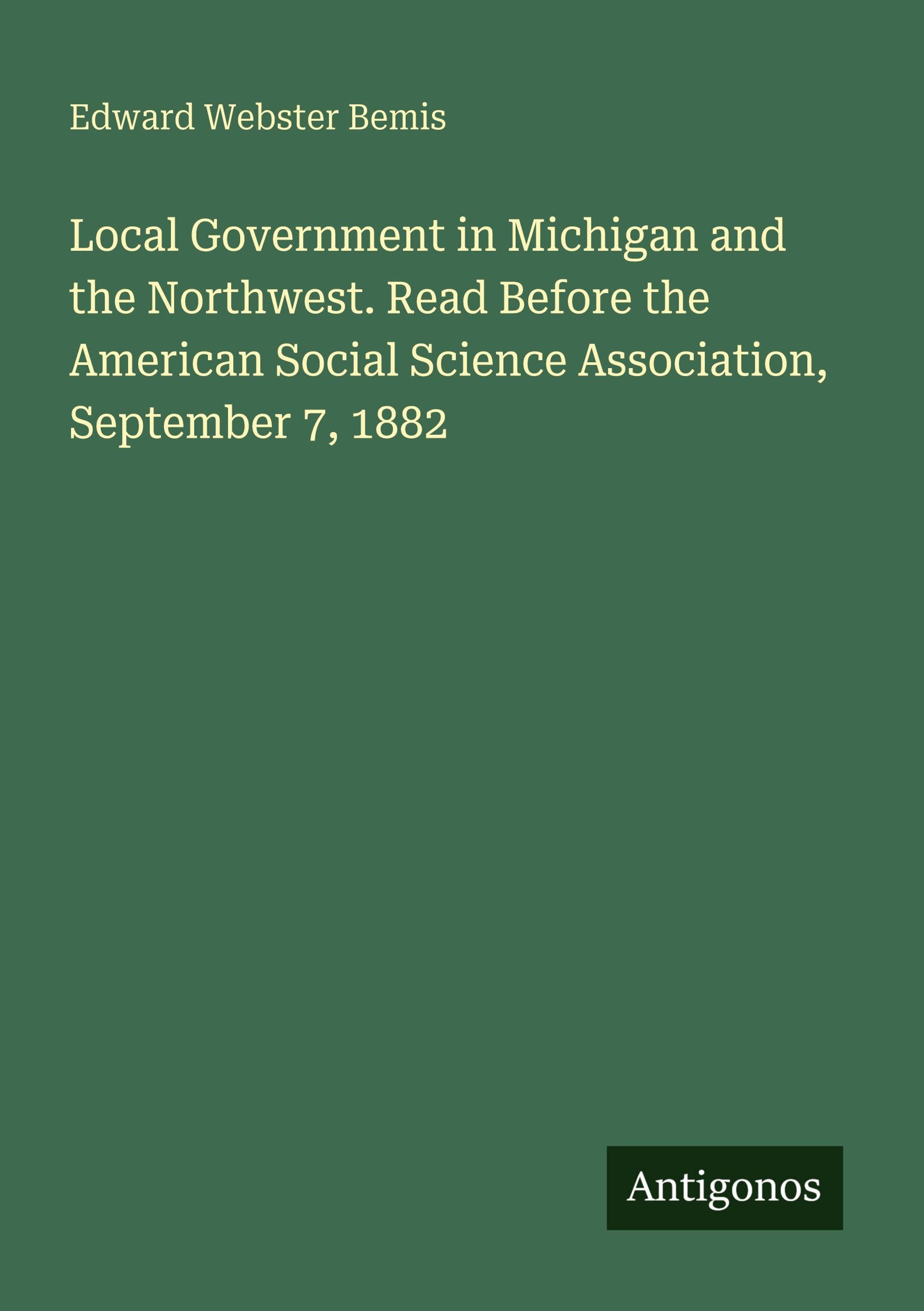 Local Government in Michigan and the Northwest. Read Before the American Social Science Association, September 7, 1882