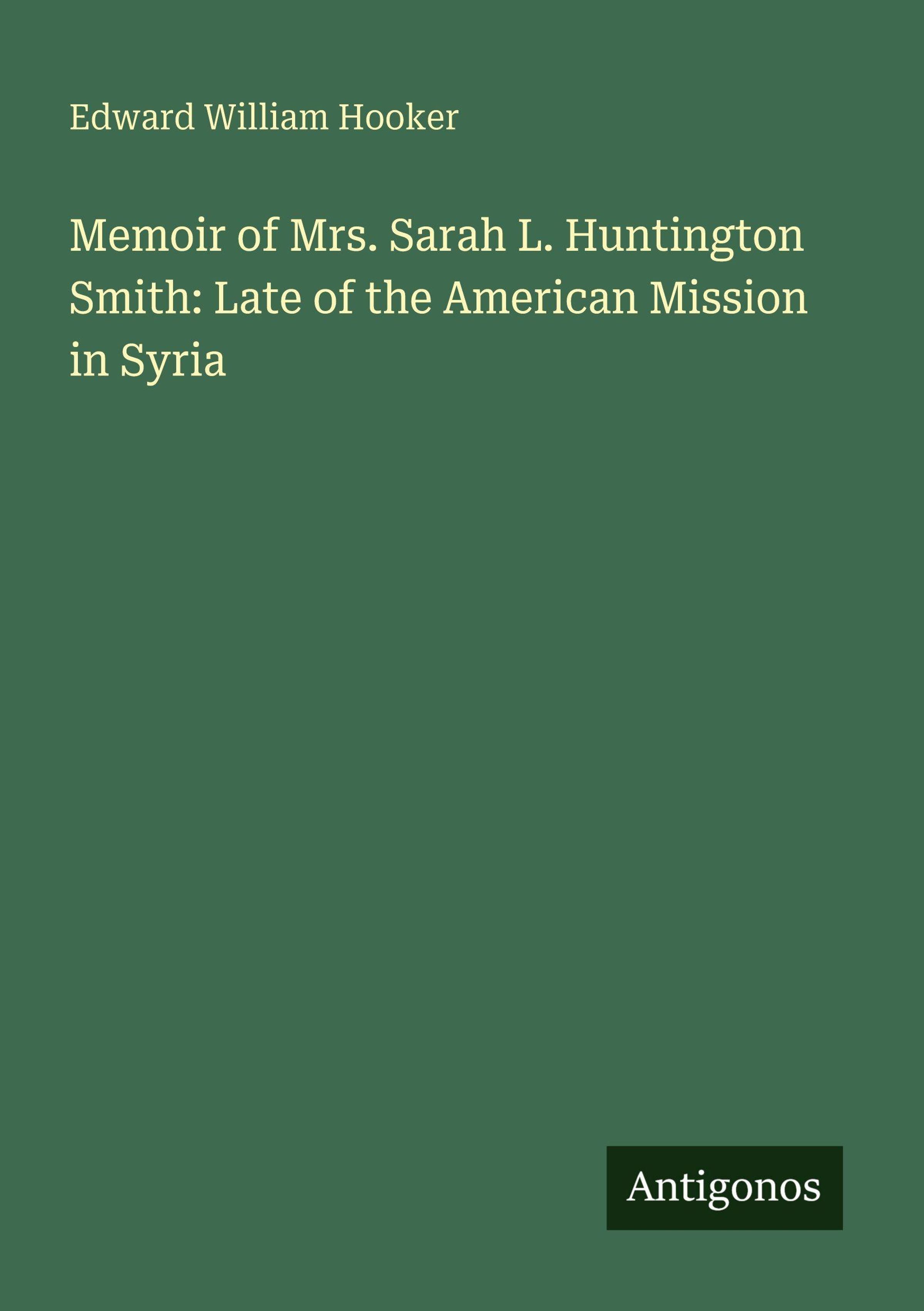 Edward William Hooker: Memoir of Mrs. Sarah L. Huntington Smith: Late of the American Mission in Syria, Kartoniert / Broschiert