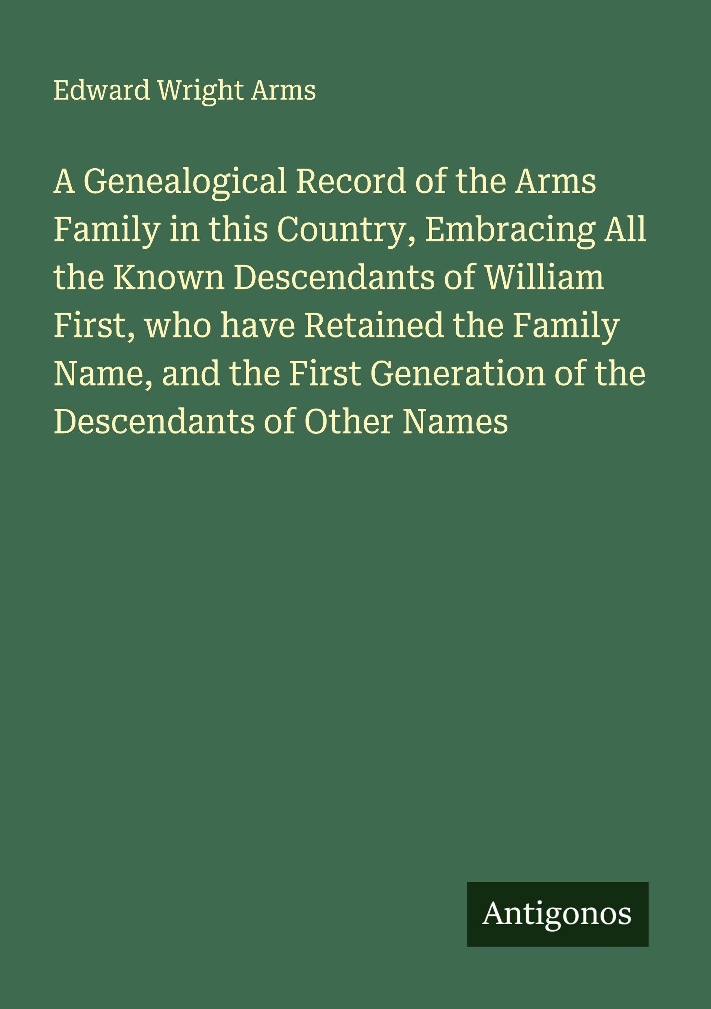 A Genealogical Record of the Arms Family in this Country, Embracing All the Known Descendants of William First, who have Retained the Family Name, and the First Generation of the Descendants of Other Names