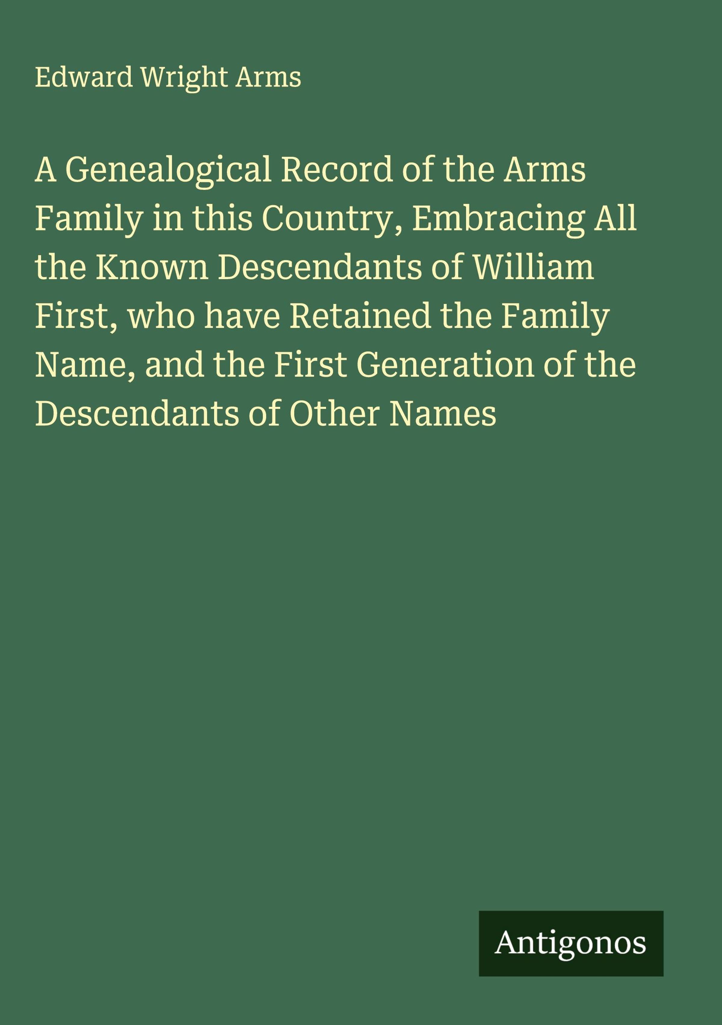 A Genealogical Record of the Arms Family in this Country, Embracing All the Known Descendants of William First, who have Retained the Family Name, and the First Generation of the Descendants of Other Names