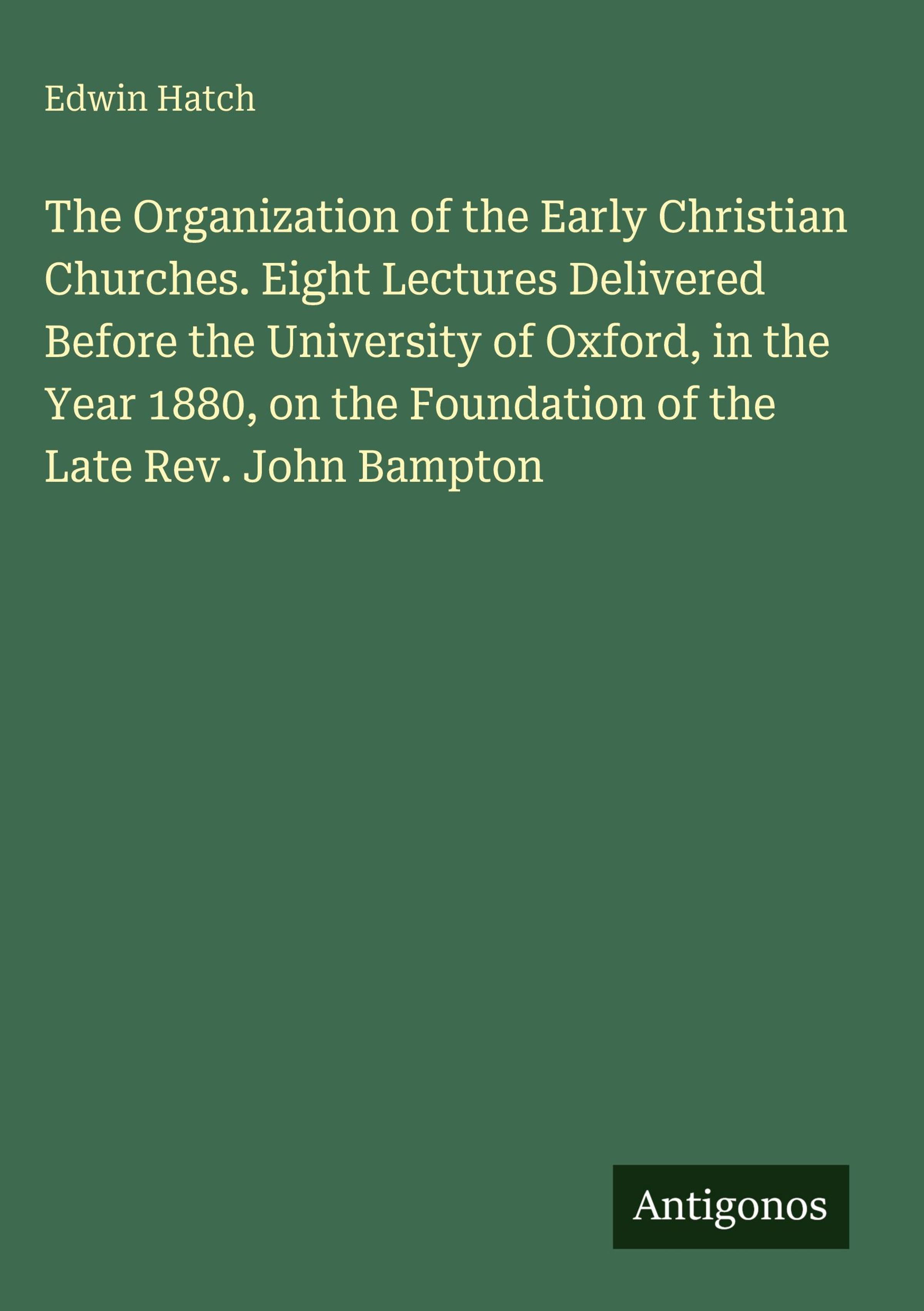 Edwin Hatch: The Organization of the Early Christian Churches. Eight Lectures Delivered Before the University of..., Gebunden