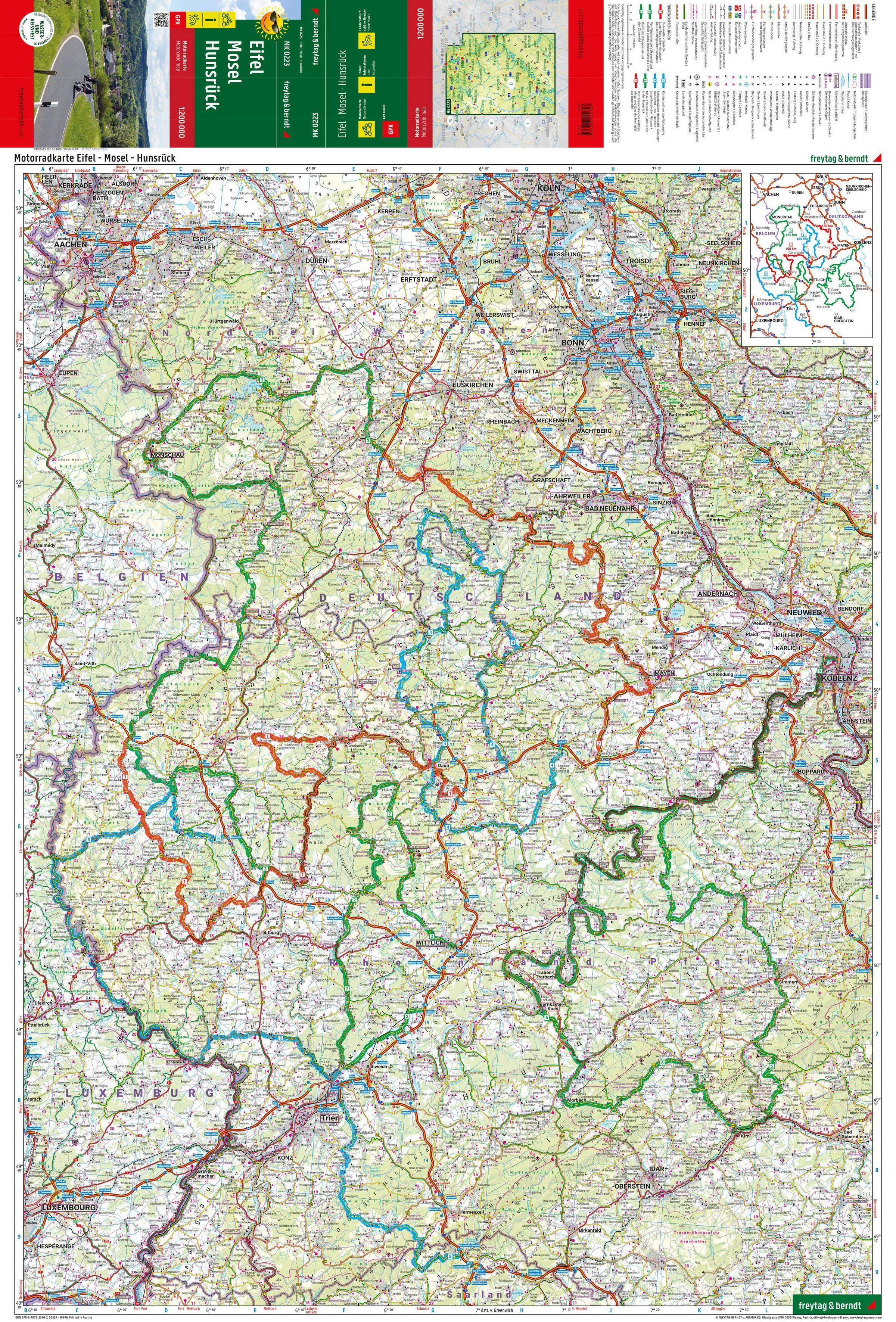 Eifel - Mosel - Hunsrück, Motorradkarte 1:200.000, freytag & berndt
