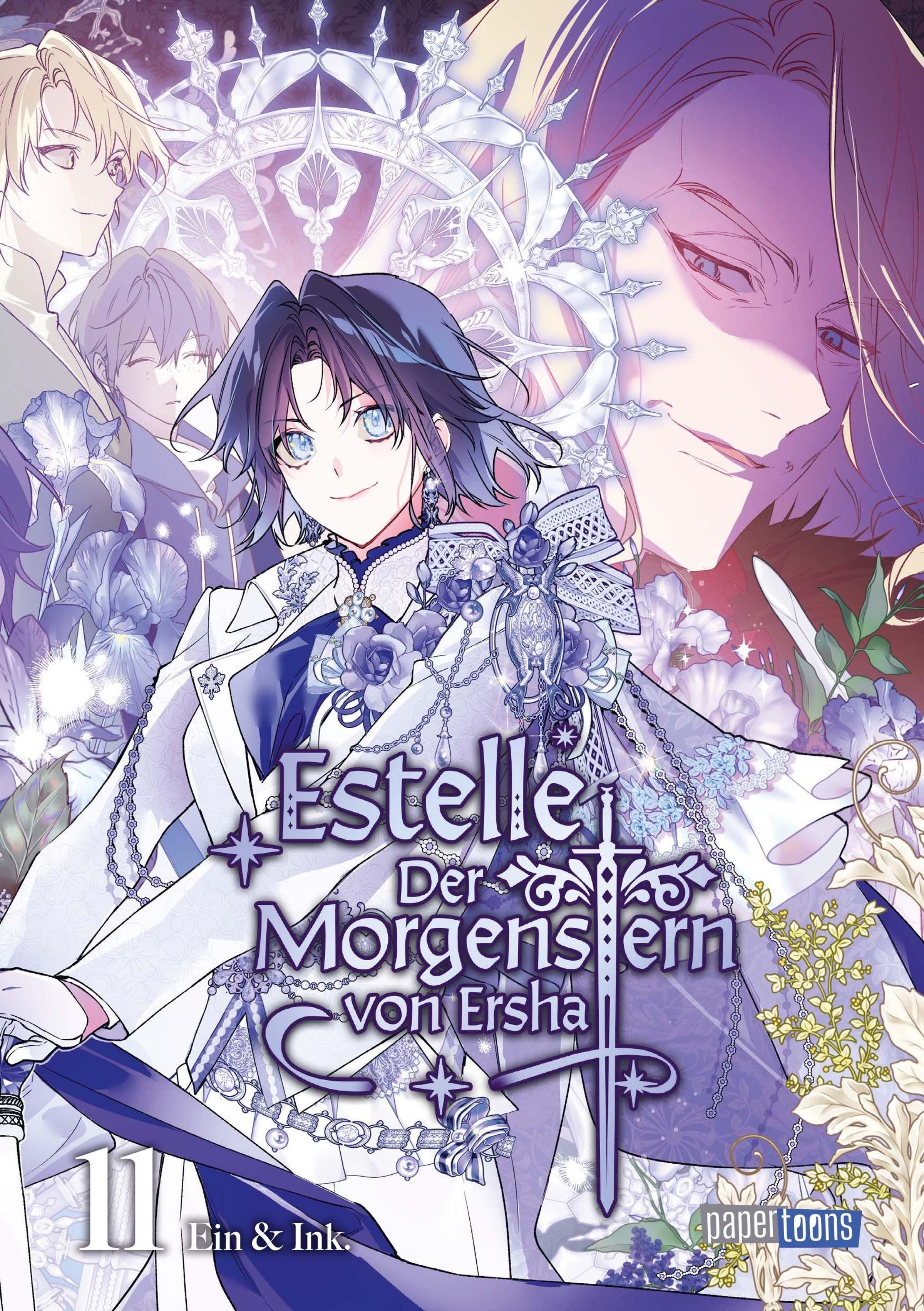 Text: "Estelle: Der Morgenstern von Ersha", "11", "Ein & Ink.", "papier toons". Illustration mit mehreren Figuren., Buch