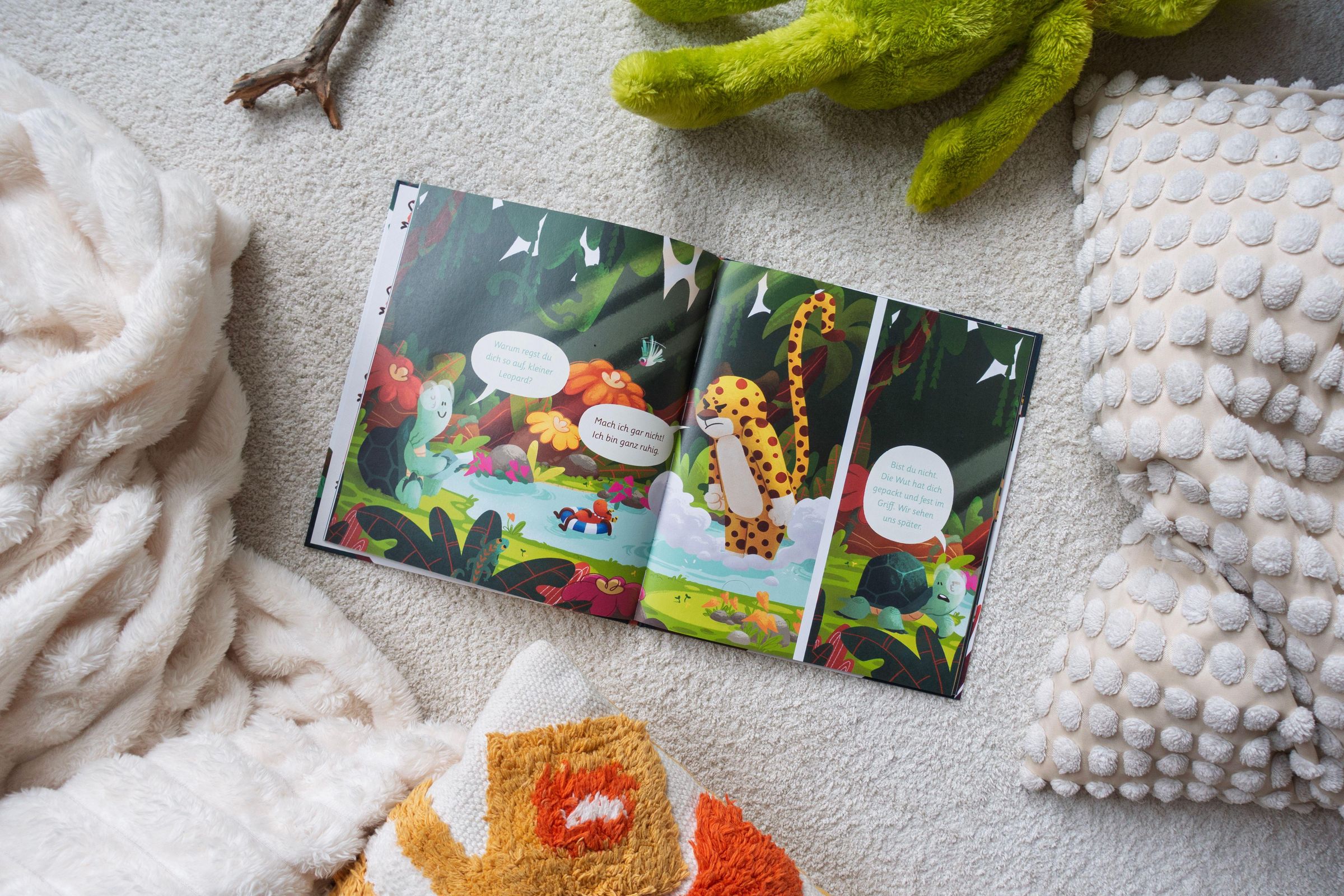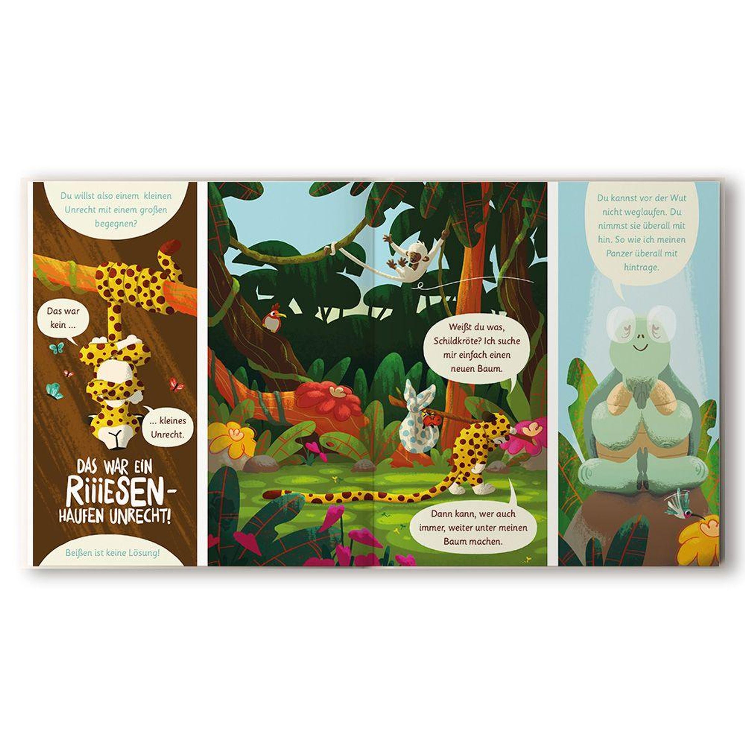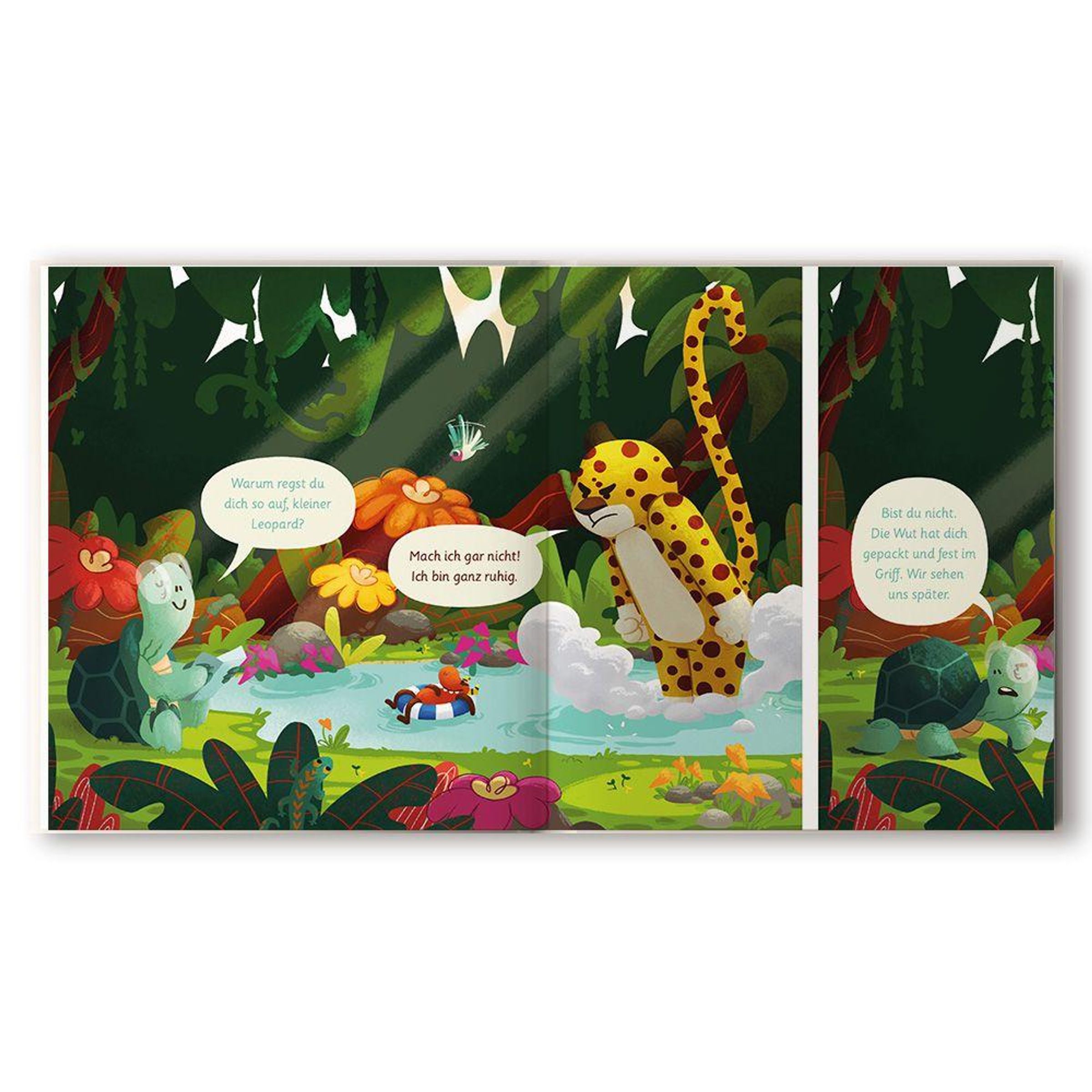 Gefühle sind gar nicht so einfach - das merkt auch der kleine Leopard, der gar nicht weiß, wohin mit seiner Wut. Bevor er aber den ganzen Dschungel zusammenwüten kann, trifft er auf seinen Freund die Schildkröte - und die kann ganz schön viel zu Gefühlen sagen.