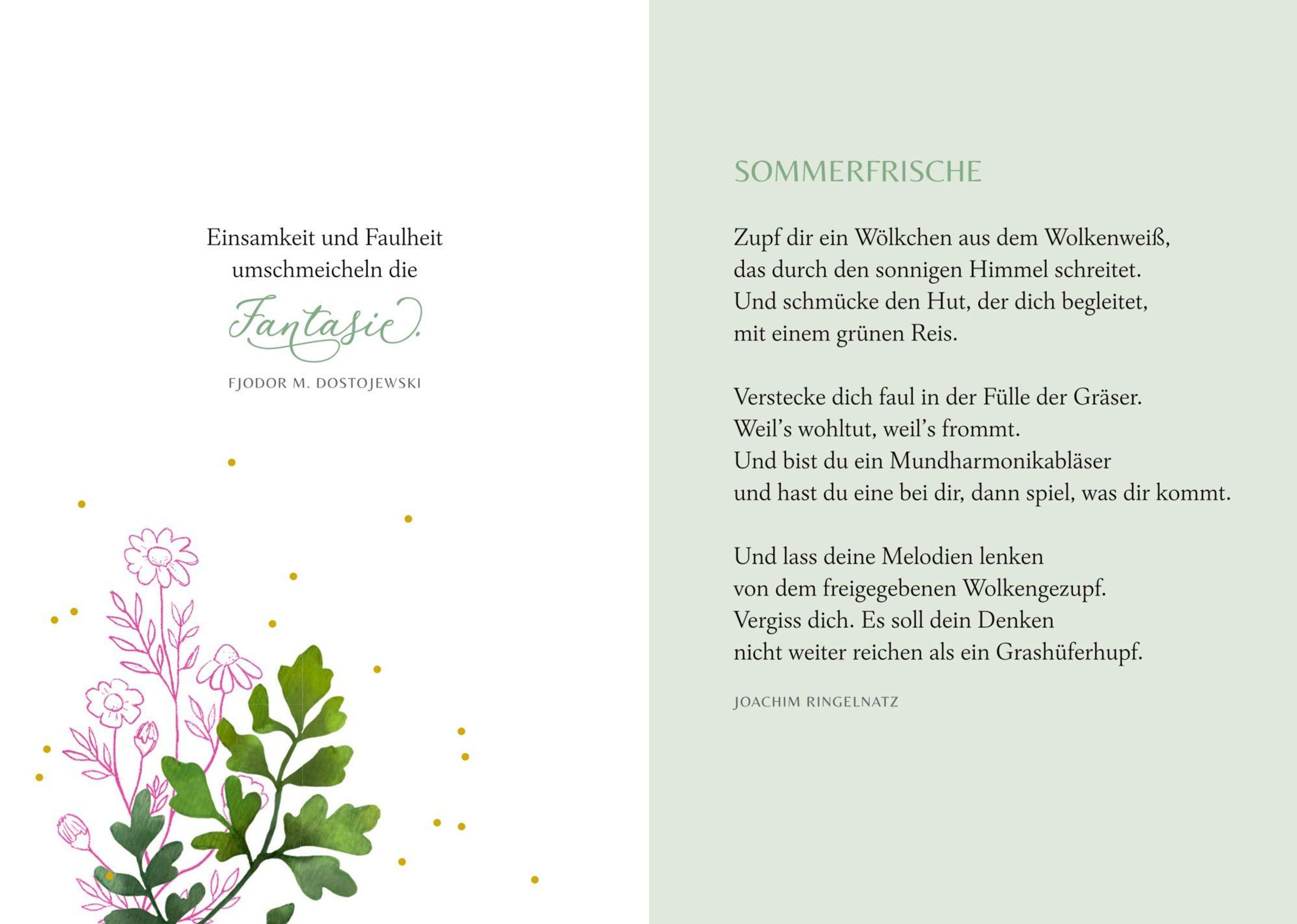 Geschichten, Gedanken und Tipps für kleine Auszeiten Zauberhafte Naturillustrationen Hochwertige Ausstattung mit Strukturpapier und Goldfolie Ein Geschenk für Menschen, denen wir Ruhe im Leben gönnen Eine kleine Oase der Ruhe im stressigen Alltag - dieses Buch bietet sie. Es vereint inspirierende Texte und praktische Tipps. Ideal für alle, denen wir eine kleine Auszeit vom täglichen Stress wünschen. Hochwertig ausgestattet mit Strukturpapier, Goldfolie und geprägtem Etikett - ein Geschenk voller Herzenswärme.