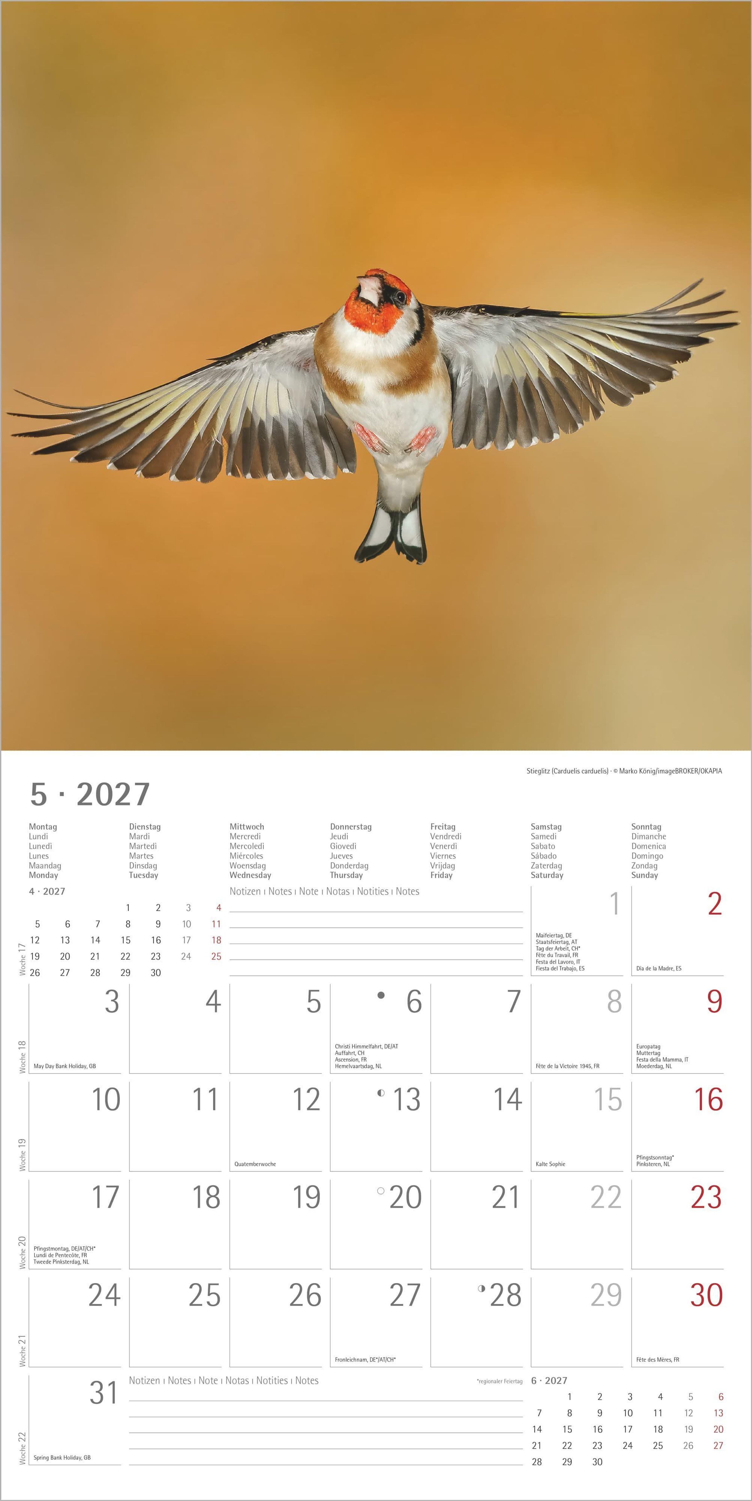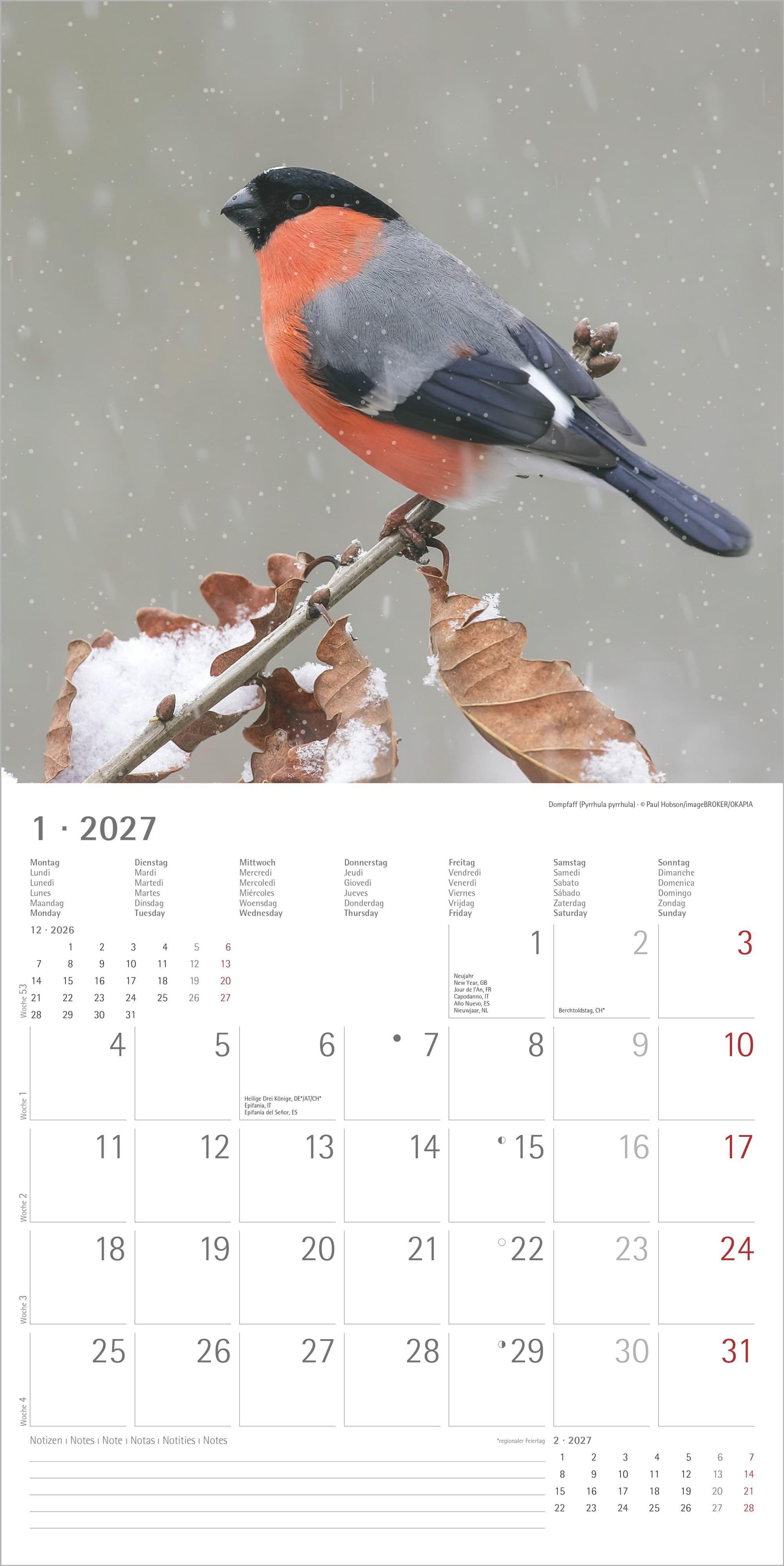 Der Alpha Edition Einheimische Vögel Kalender 2027 vereint hochwertige Naturfotografie mit durchdachter Funktionalität -- ein Muss für Vogelliebhaber und Naturfreunde.