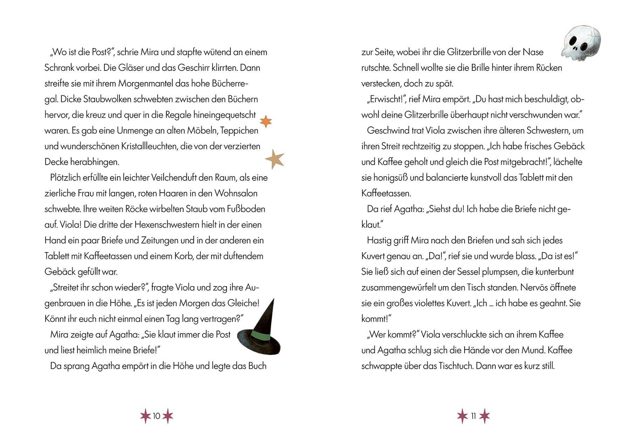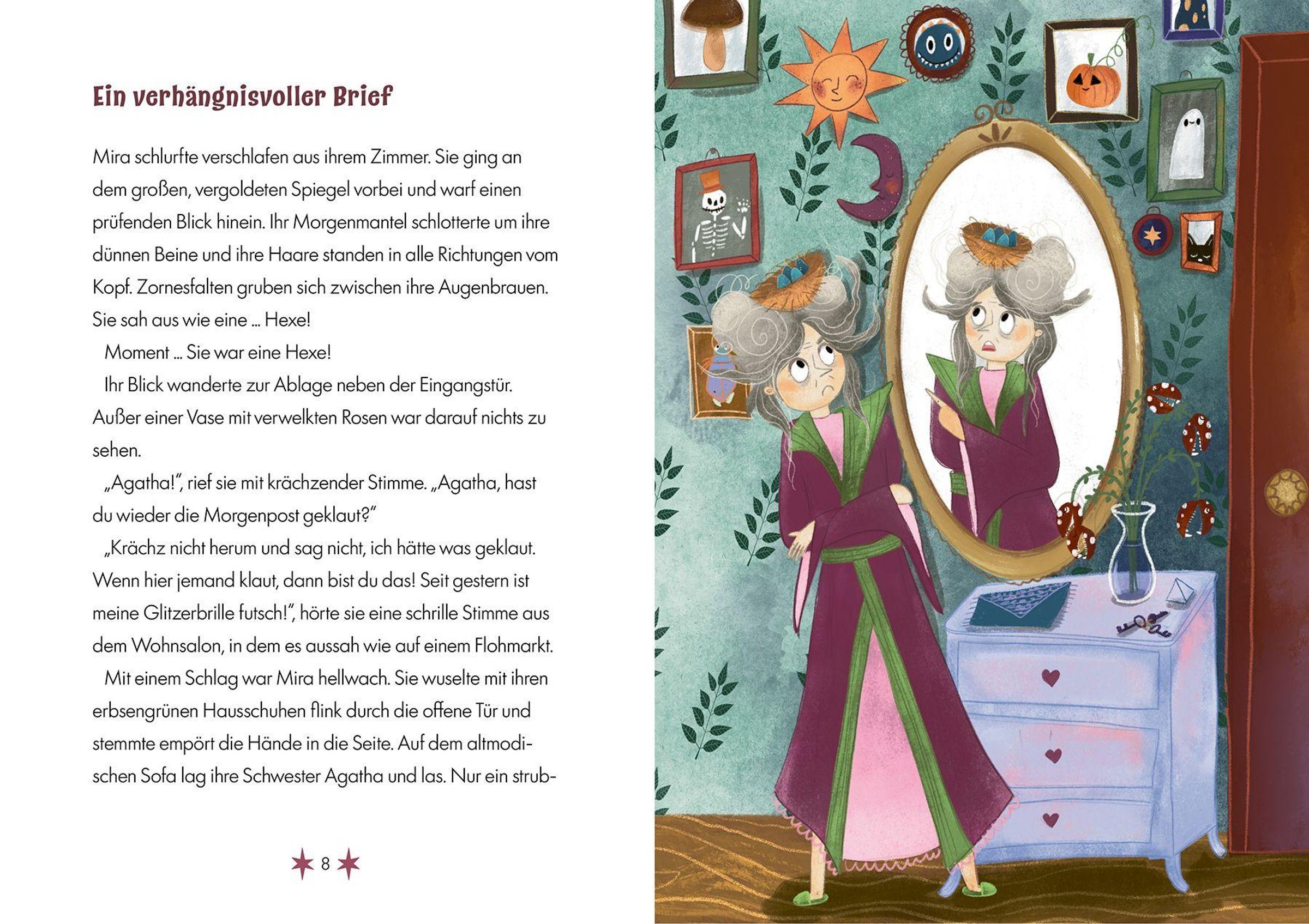 Ein Brief versetzt die drei Hexenschwestern Mira, Agatha und Viola in helle Aufregung: Aurora, die oberste von allen Hexen, hat sich angekündigt! Um ihre Fähigkeiten unter Beweis zu stellen, müssen die Schwestern ein besonders sicheres Versteck für ein Buch mit geheimen Zaubersprüchen finden. Doch als Viola eine Hexentreppe zaubert, die in ein altes Turmzimmer führen soll, wird schnell klar: Die Treppe hat ihren eigenen Willen und spielt völlig verrückt! Als dann auch noch ein geheimnisvolles Mädchen vor ihrer Tür steht, ist das Chaos komplett.