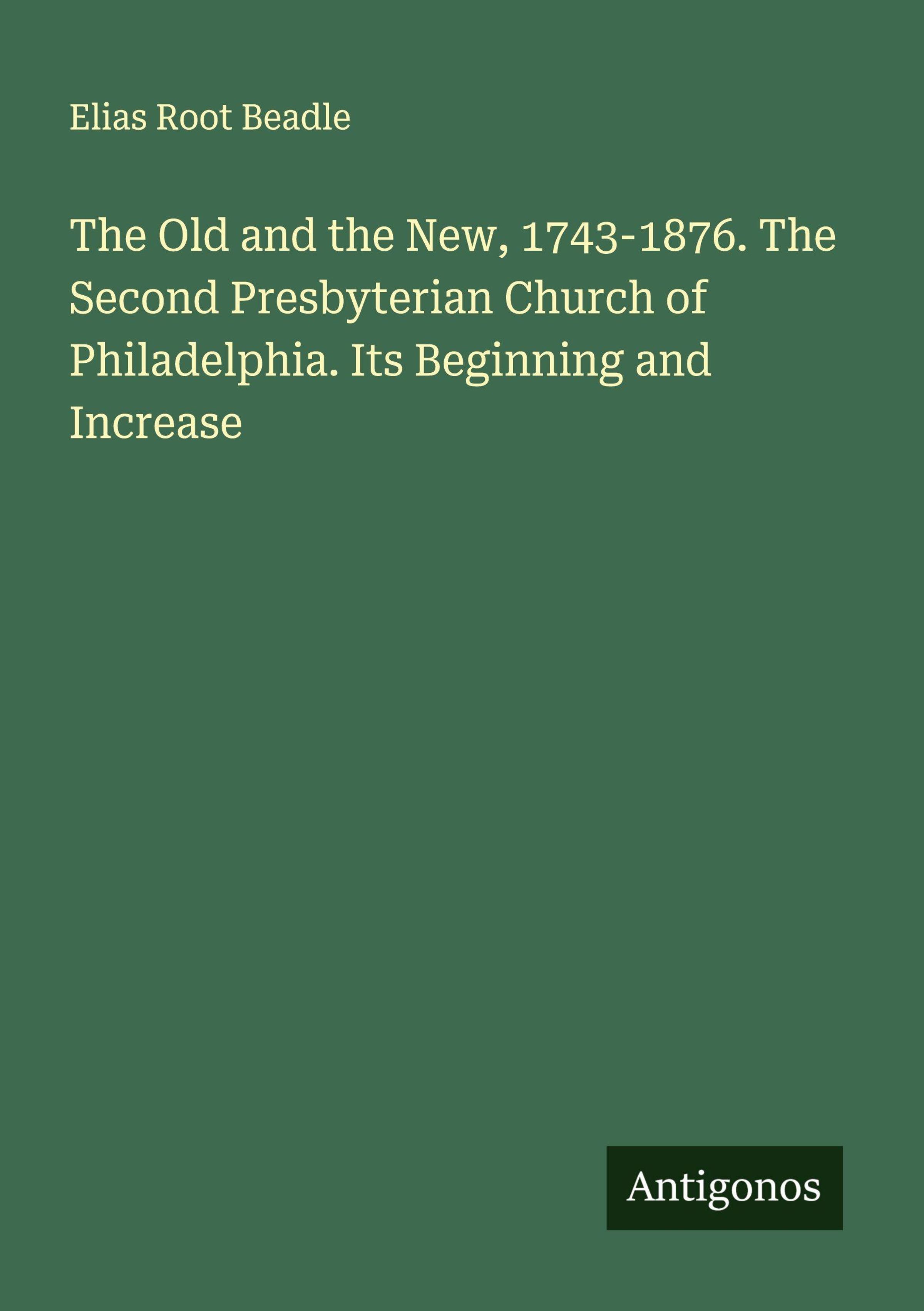 The Old and the New, 1743-1876. The Second Presbyterian Church of Philadelphia. Its Beginning and Increase
