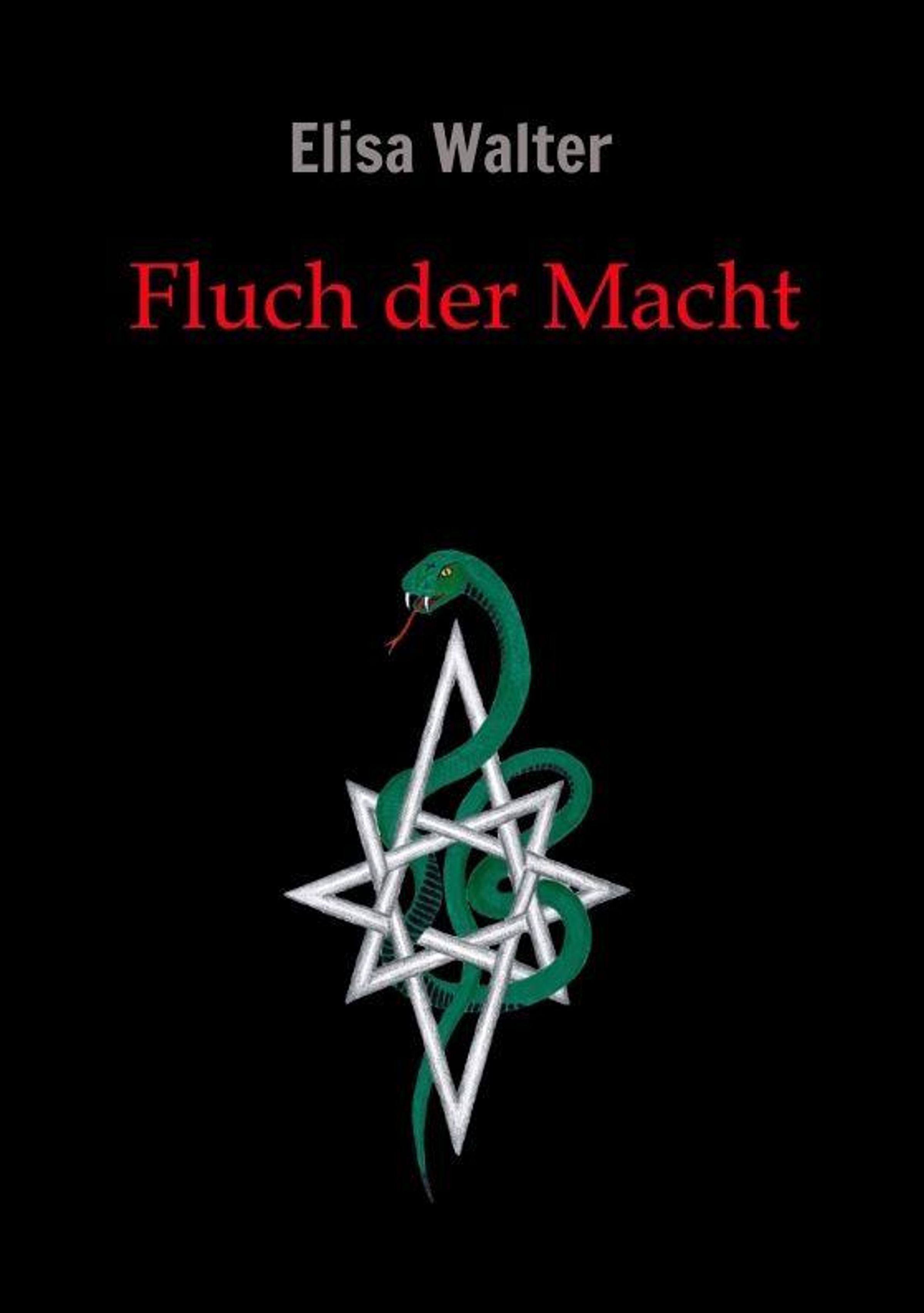 Text: "Elisa Walter, Fluch der Macht." Eine grüne Schlange windet sich um ein silbernes Sternsymbol., Buch