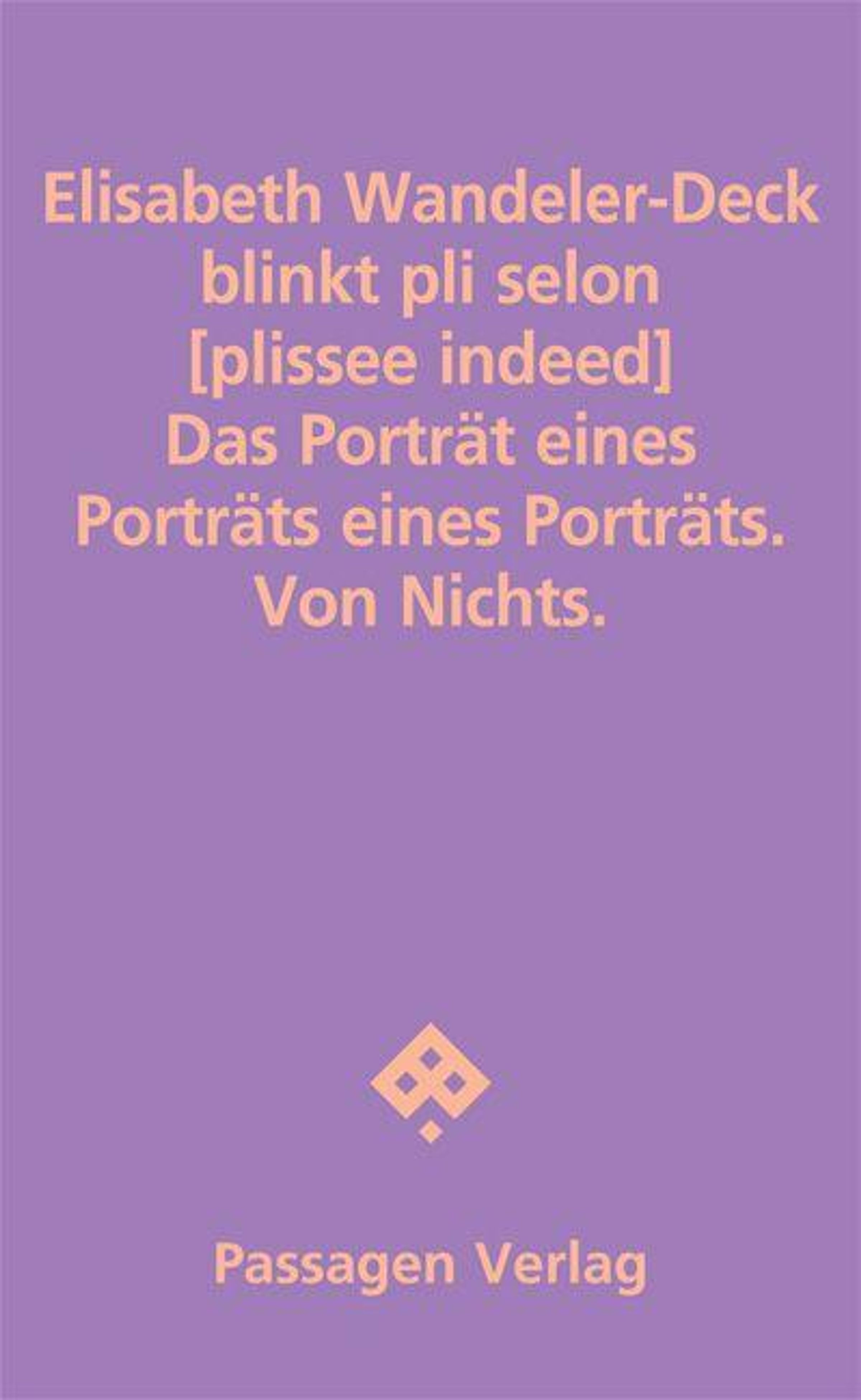 blinkt pli selon [plissee indeed] versteht sich als lyrische Auseinandersetzung mit pli selon pli von Pierre Boulez. Wenn Stéphane Mallarmés Gedichte, selber schon als Porträts verstanden, die Grundlage der Boulez'schen Komposition bilden, kann das vorliegende Langgedicht von Elisabeth Wandeler-Deck - "pli selon pli selon"- als Porträt eines Porträts eines Porträts verstanden werden. Falz um Falte, Falte um Stoffstreif breitet sich der Text aus. Zerfasert sich, wird zum Textfeld, zum Gedicht, wird infiziert von anderen Texten, von Boulez und, über den Umweg von Boulez, von Mallarmé. blinkt pli selon [plissee indeed] ist ein Porträt von Nichts, von Lust und Begehren. Es ist die dritte Veröffentlichung von Elisabeth Wandeler-Deck im Passagen Verlag.