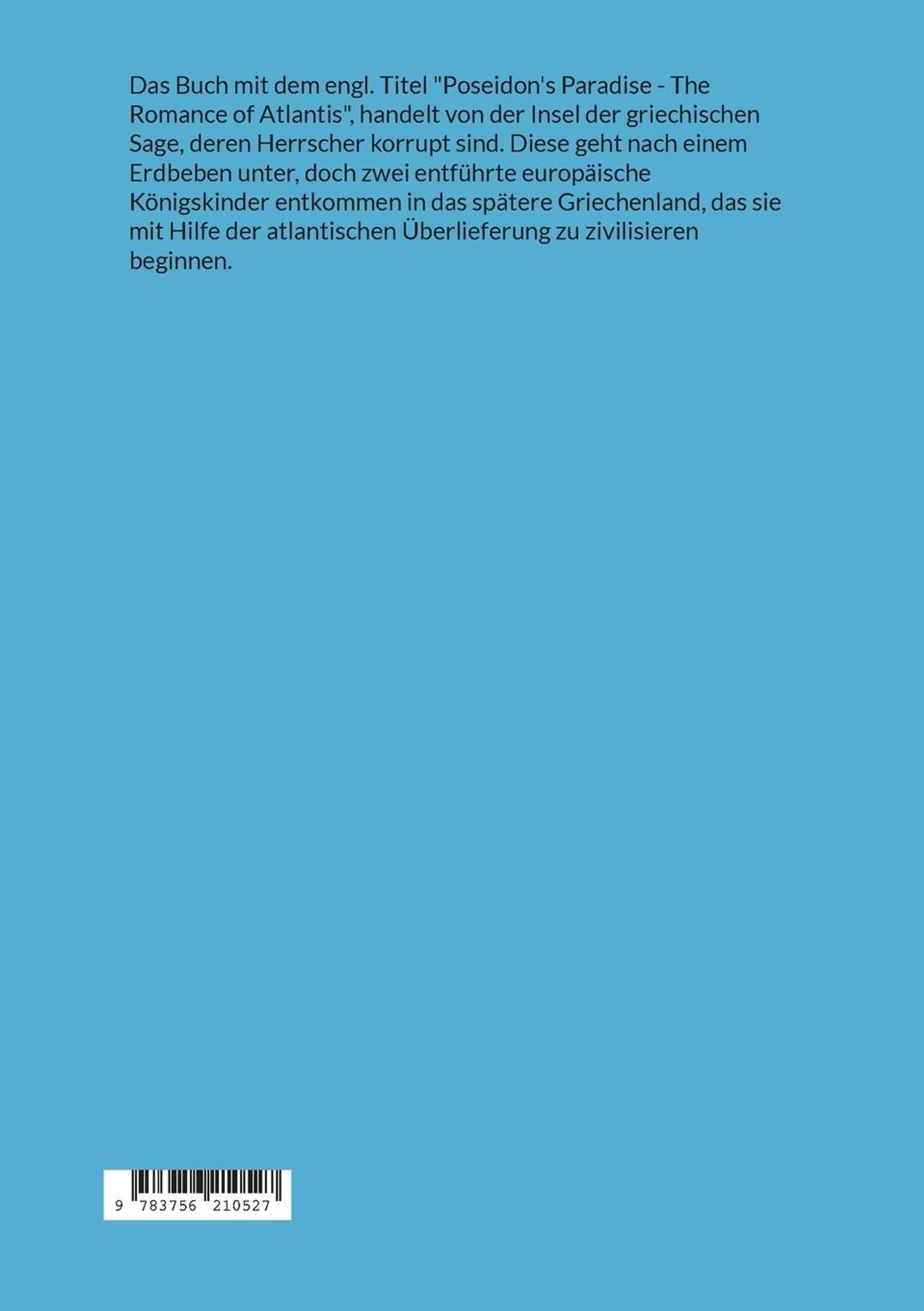 Das Buch mit dem engl. Titel "Poseidon's Paradise - The Romance of Atlantis", handelt von der Insel der griechischen Sage, deren Herrscher korrupt sind. Diese geht nach einem Erdbeben unter, doch zwei entführte europäische Königskinder entkommen in das spätere Griechenland, das sie mit Hilfe der atlantischen Überlieferung zu zivilisieren beginnen.