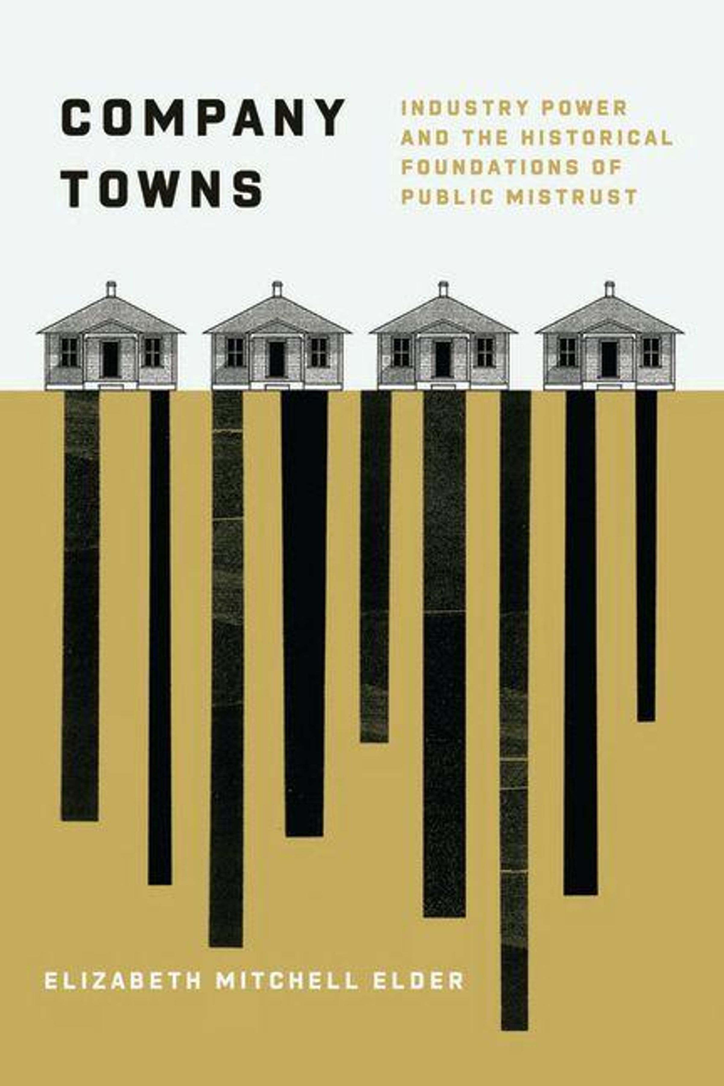 "COMPANY TOWNS" oben links, unten steht "ELIZABETH MITCHELL ELDER". Illustration: vier identische Häuser auf langen Säulen., Buch