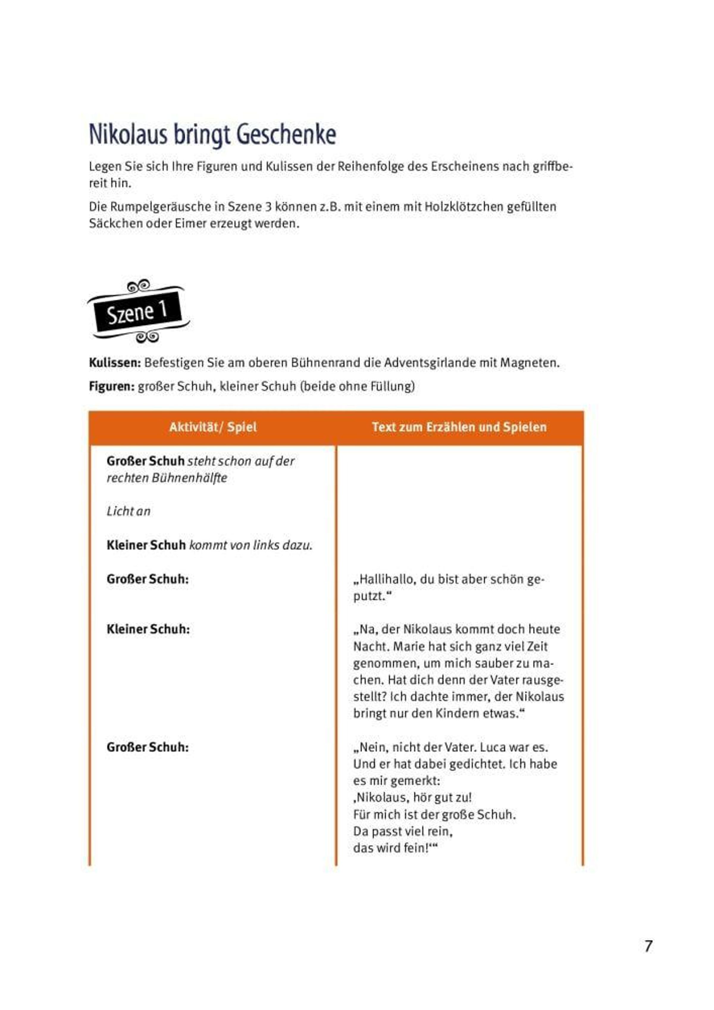 Mitten im Winter erfährt Bischof Nikolaus, dass eine Familie Hunger leidet. Den Kindern fehlen Schuhe und Kleider für die kalten Tage. Und Spielzeug gibt es auch keines. Am Abend macht sich Nikolaus auf und stellt einen großen Sack mit Gaben vor die Tür des Hauses, klopft an und will dann unbemerkt verschwinden ... Mit diesem Geschichten- und Figurenset für Kita oder Grundschule bringen Sie die beliebte Legende des Heiligen Nikolaus auf die Bühne Ihres Schattentheaters: alle Figuren und Kulissen zum Ausschneiden, eine Bastelanleitung für die Schattenspielfiguren sowie eine kindgerechte Erzählfassung mit Regieanweisungen. Außerdem: Tipps für die Aufführung, zur Weiterführung des Themas in der Gruppe und pädagogische Hinweise.