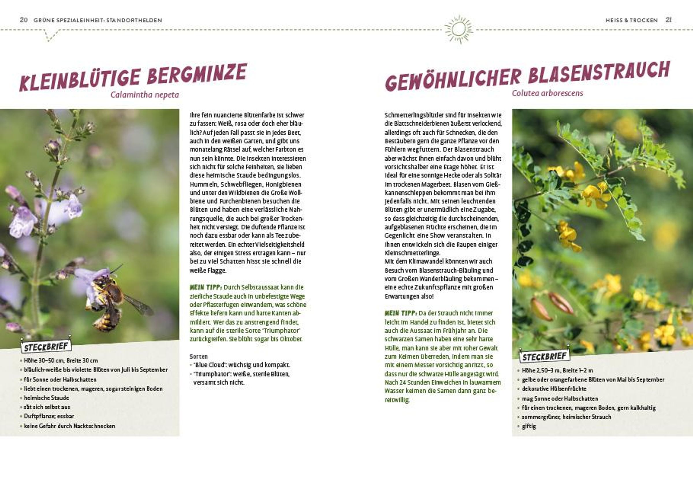 Hitze, Dürre, Starkregen und dazu milde Winter, die Schnecken schonen und uns neue Schädlinge bescheren. Es gibt viele Dinge, die dem Gärtner das Gärtnern verleiden könnten, aber gegen jedes Ärgernis ist eine Pflanze gewachsen. Lernen Sie 84 Pflanzen mit Superkräften kennen, die schwierige Standorte begrünen, klimafit und selbstbewusst Widrigkeiten entgegentreten, heldenhaft heimische Bienen & Co. ernähren oder für ein angenehmes Klima im Garten sorgen. Sie alle sind gutaussehend, pflegeleicht sowie hausgartentauglich und können den Plagen der Neuzeit einiges entgegensetzen, um Ihnen Arbeit und Ärger zu ersparen. On top: Tipps und Tricks, um den Garten insgesamt robuster gegen Extremwetter zu machen.