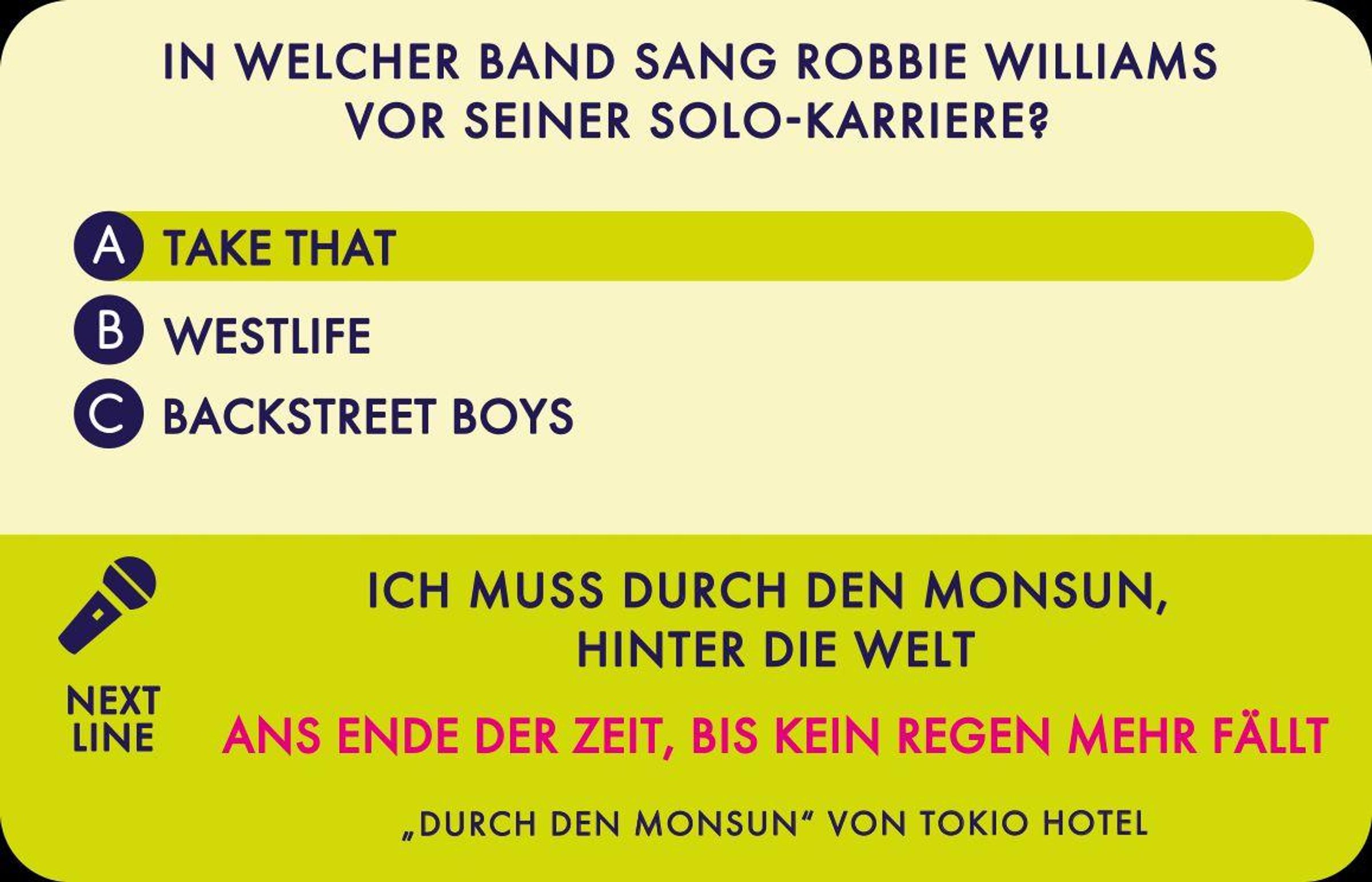 - Das Partyquiz zum Raten und Weitersingen | Lustiges Quiz und Musik-Spiel mit Multiple Choice-Fragen und Next-Line-Challenge