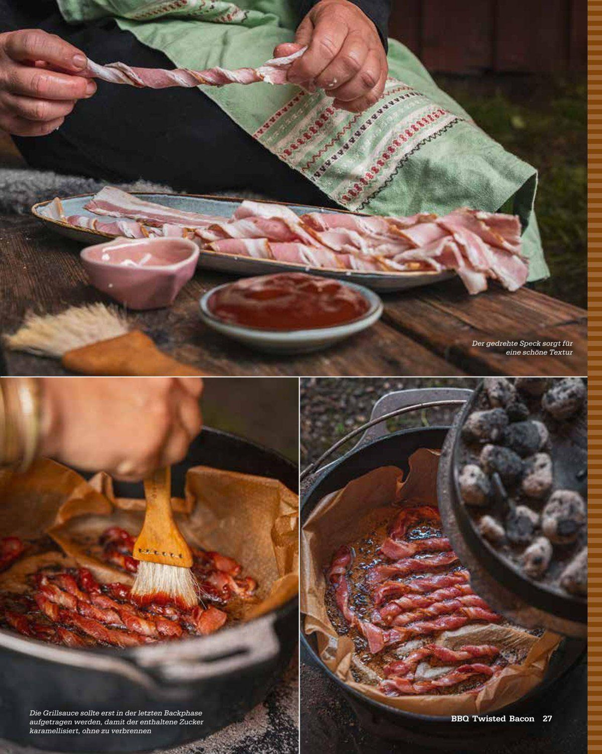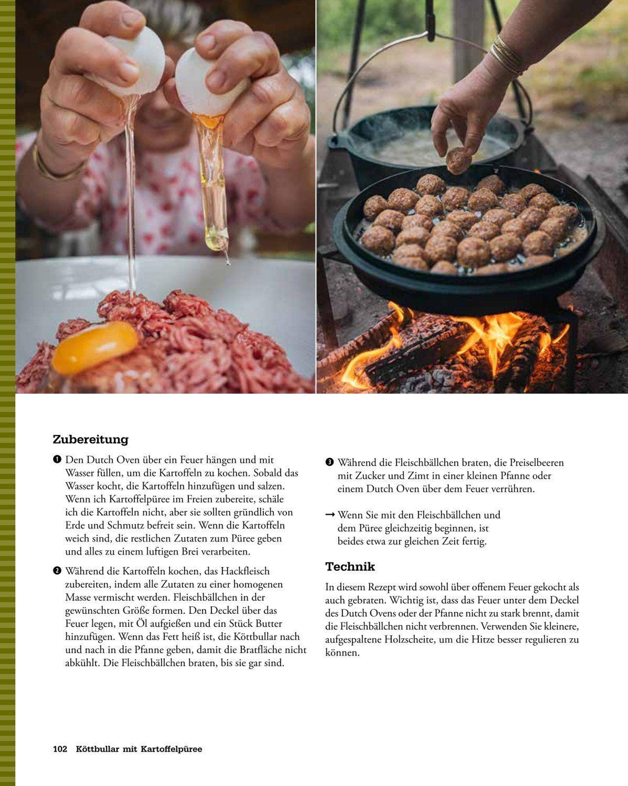 Inmitten dieser einzigartigen Landschaft des hohen Nordens setzt die renommierte Outdoor-Köchin wunderbare Dutch Oven-Rezepte in Szene und kombiniert ihre Leidenschaft für die Outdoor-Küche mit Aromen und Techniken aus aller Welt. Begleitet von beeindruckenden Fotografien, aufgenommen in den Wäldern Schwedens ist jedes Gericht ist ein Augenschmaus. Genießen Sie BBQ Twisted Bacon, Outdoor-Eintopf mit Elchfleisch und Waldpilzen, Shakshuka mit Wildpflanzen und Halloumi, Hähnchen-Plov oder Köttbullar mit Kartoffelpüree, kochen Sie internationale Rezeptvariationen von Chili sin Carne und Fischsuppe mit Safran, über Moussaka und nordafrikanisches Curry-Hähnchen, Tortizzas und Hot Nachos bis hin zu Taco Pie und Focaccia. Ran an den Dutch Oven!