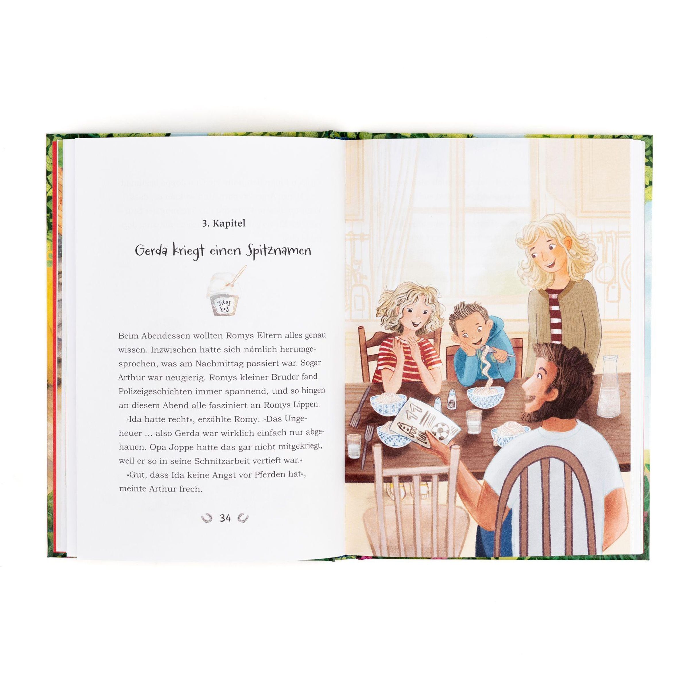 Einsamkeit ist für Pferde nicht gut, sagt Opa Joppe, und deshalb nimmt er seine Schimmelstute Gerda überallhin mit. Seiner Enkelin Romy gefällt das gar nicht, denn ein bisschen Angst hat sie vor dem großen Tier schon, auch wenn das keiner wissen muss. Es kann ja nicht jede so ein Pferdemädchen sein wie ihre beste Freundin Ida. Romy findet es überhaupt nicht schlimm, als die Leute im Ort denken, dass Gerda, die jetzt von allen Tante Pferda genannt wird, die teuren Rosen angeknabbert hat.