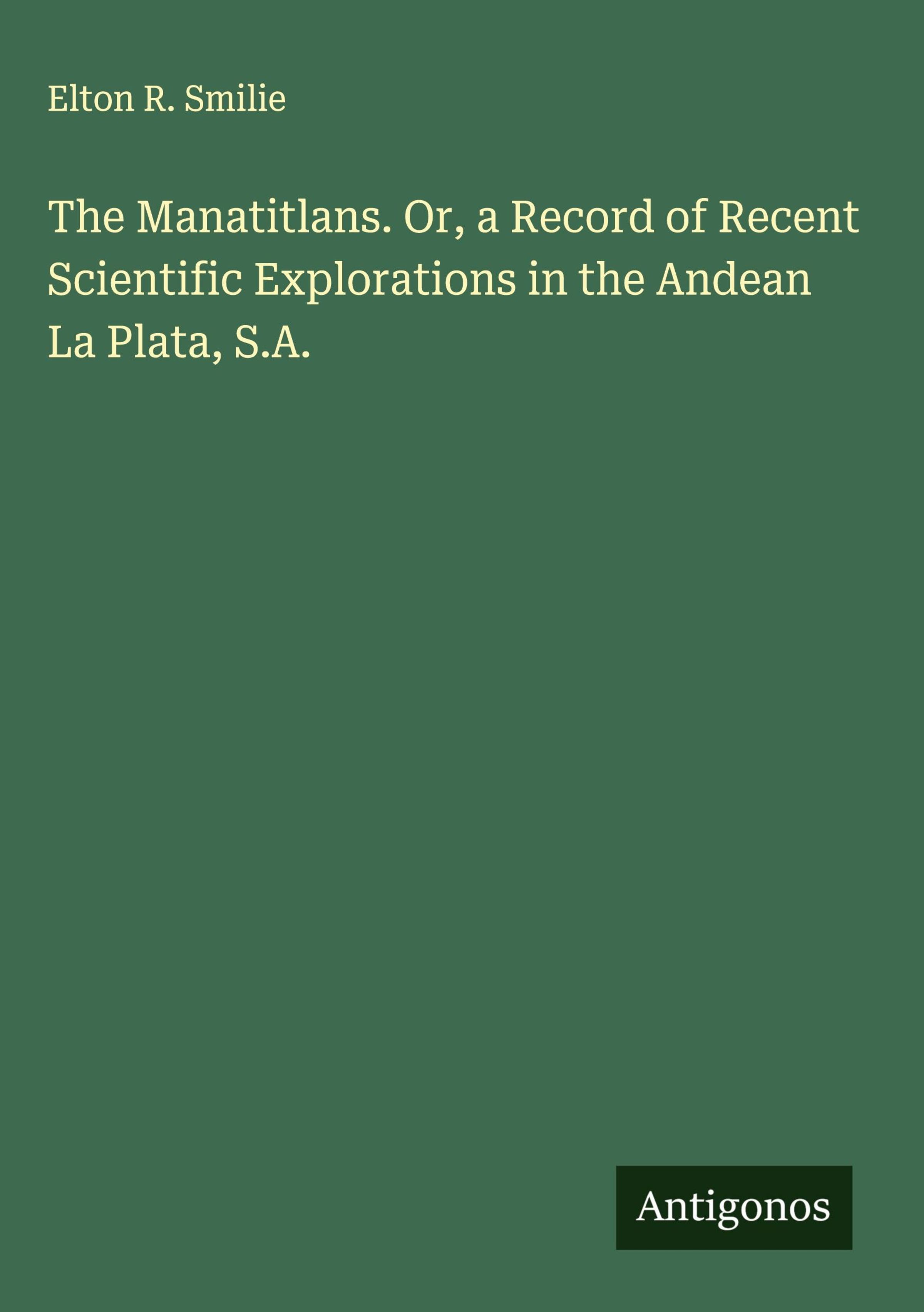 Elton R. Smilie: The Manatitlans. Or, a Record of Recent Scientific Explorations in the Andean La Plata, S.A., Gebunden