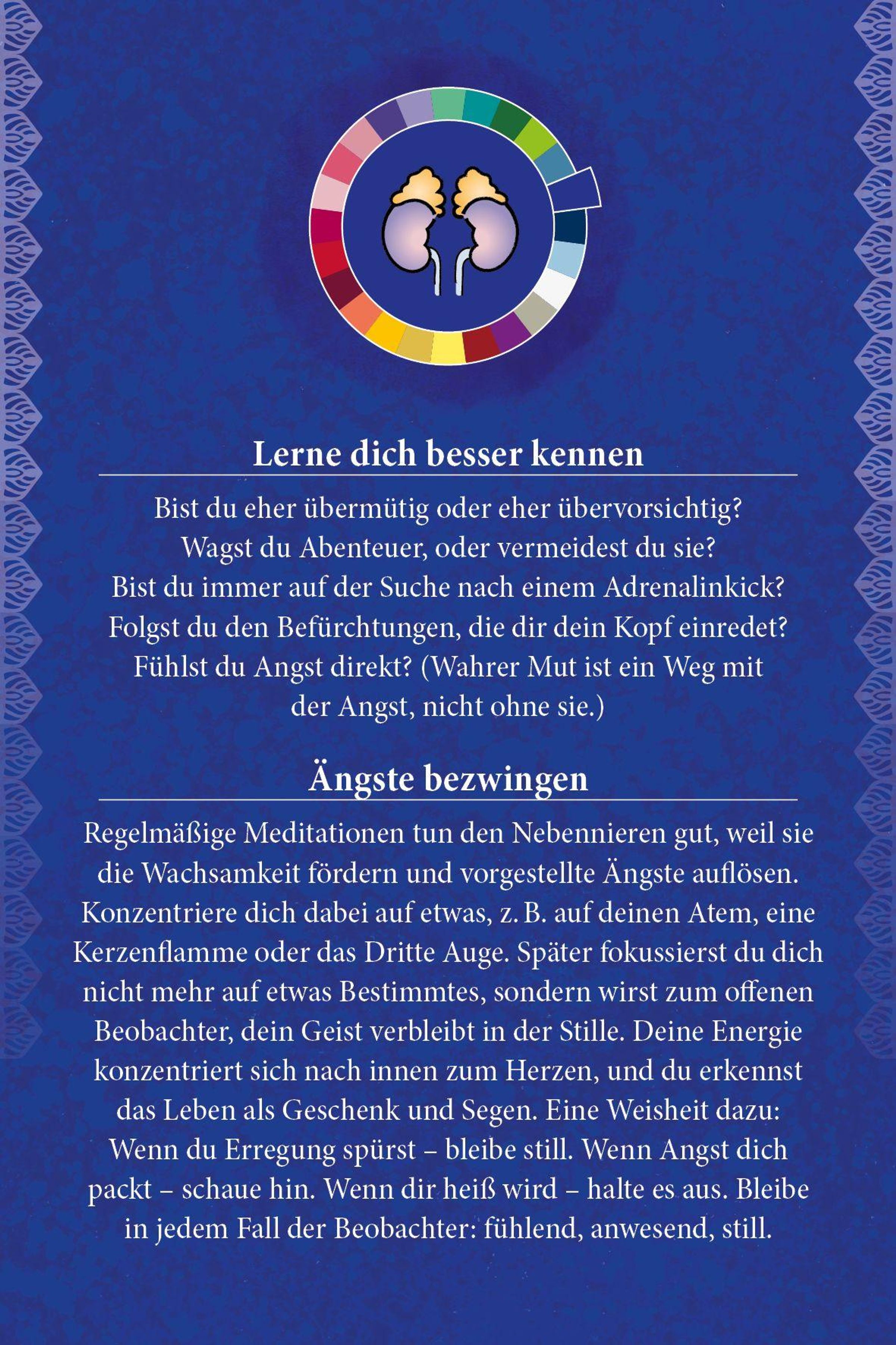 Welches innere Thema verbirgt sich hinter Herz, Magen oder Nieren? Dieses Kartenset entschlüsselt die Sprache unserer Organe. In ihnen setzen sich emotionale und psychische Belastungen sowie traumatische Erlebnisse fest, was langfristig zu Energieblockaden und körperlichen Erkrankungen führt. Die Karten beschreiben 24 Organsysteme - jedes mit seiner eigenen Zeit, Schwingung und Kraft. Sie verbinden altes Heilwissen mit praktischen Übungen: Mudra-Meditationen, Tönen, Reflexionsfragen und stärkenden Impulsen für den Alltag. Ob chronische Beschwerden oder emotionale Themen - mit diesen Karten gelingt es dir leicht, Blockaden zu erkennen, zu lösen und kraftvolle Heilimpulse zu setzen.