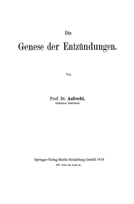 Emanuel Aufrecht: Die Genese der Entzündungen, Kartoniert / Broschiert