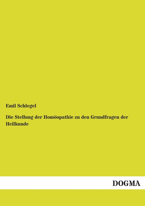 Emil Schlegel: Die Stellung der Homöopathie zu den Grundfragen der Heilkunde, Kartoniert / Broschiert