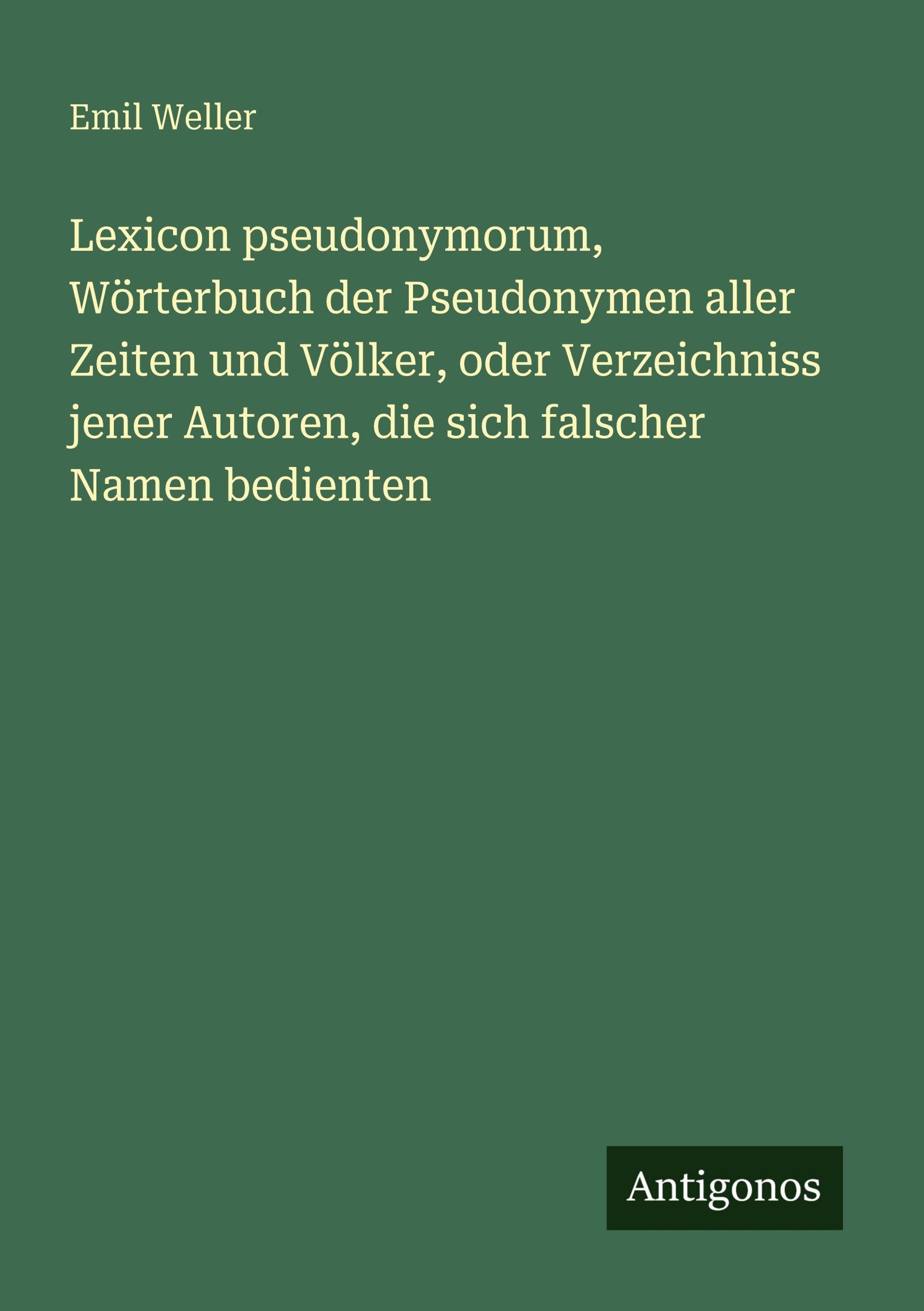 Emil Weller: Lexicon pseudonymorum, Wörterbuch der Pseudonymen aller Zeiten und Völker, oder Verzeichniss jener..., Kartoniert / Broschiert