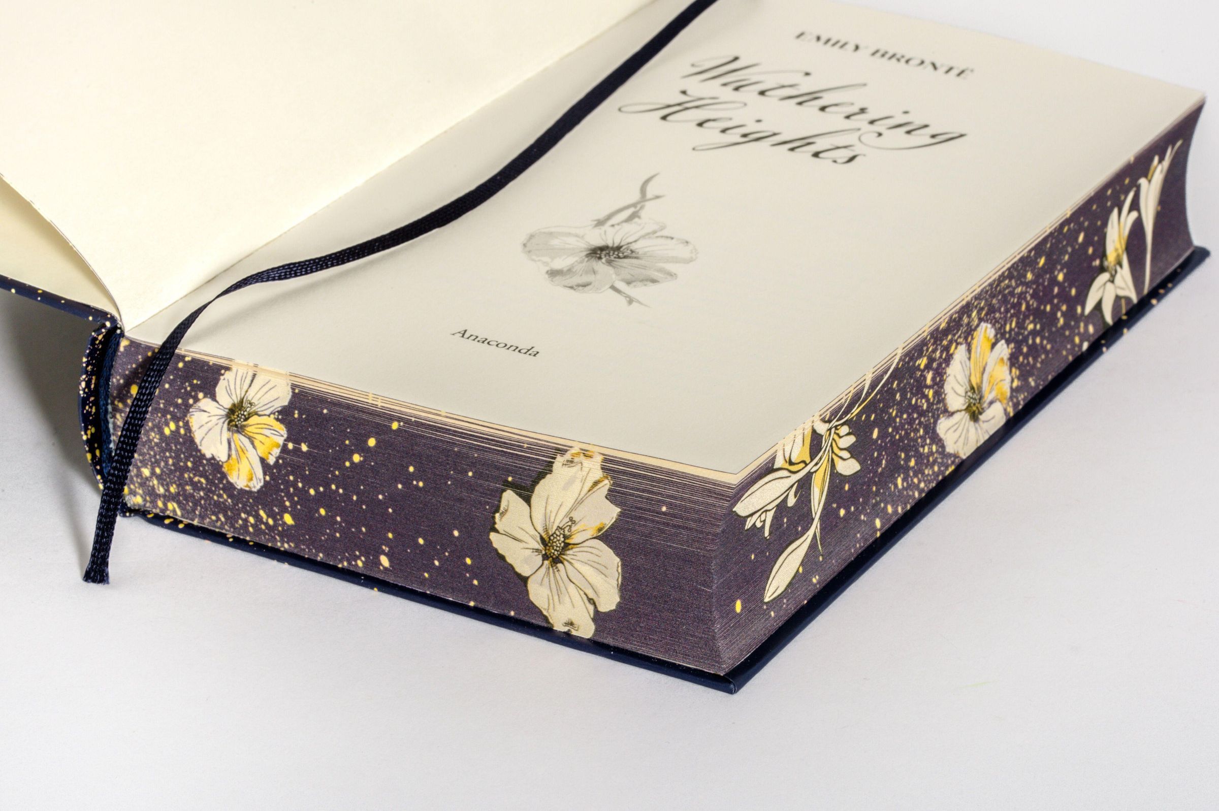 - Sprayed edges and ribbon bookmark, hardcover, embossed cover