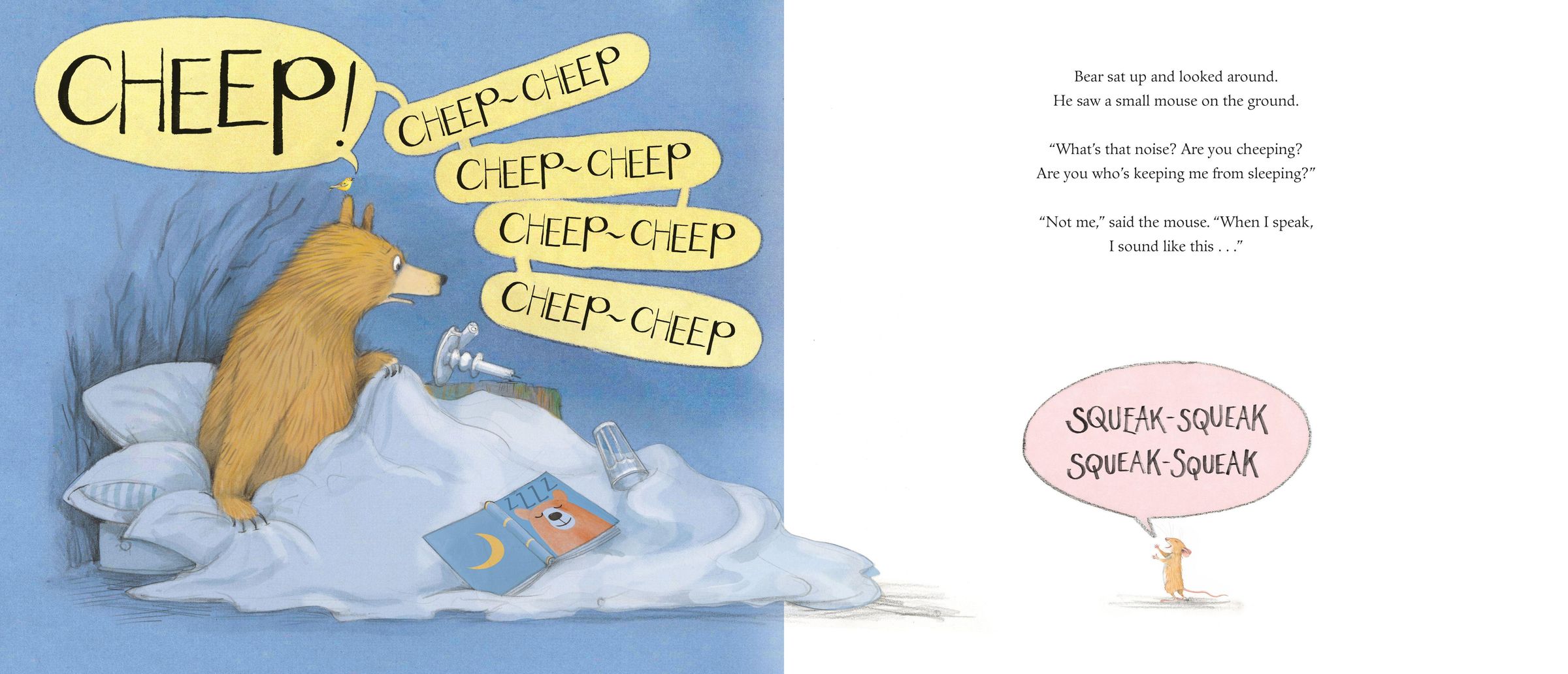 All Bear wants is a quiet nap . . . but he can't work out who is keeping him awake with their cheep cheeping. An increasingly frustrated bear leaves his cosy cave to ask the other animals, but they none of them cheep. Maybe the culprit is closer to home?
