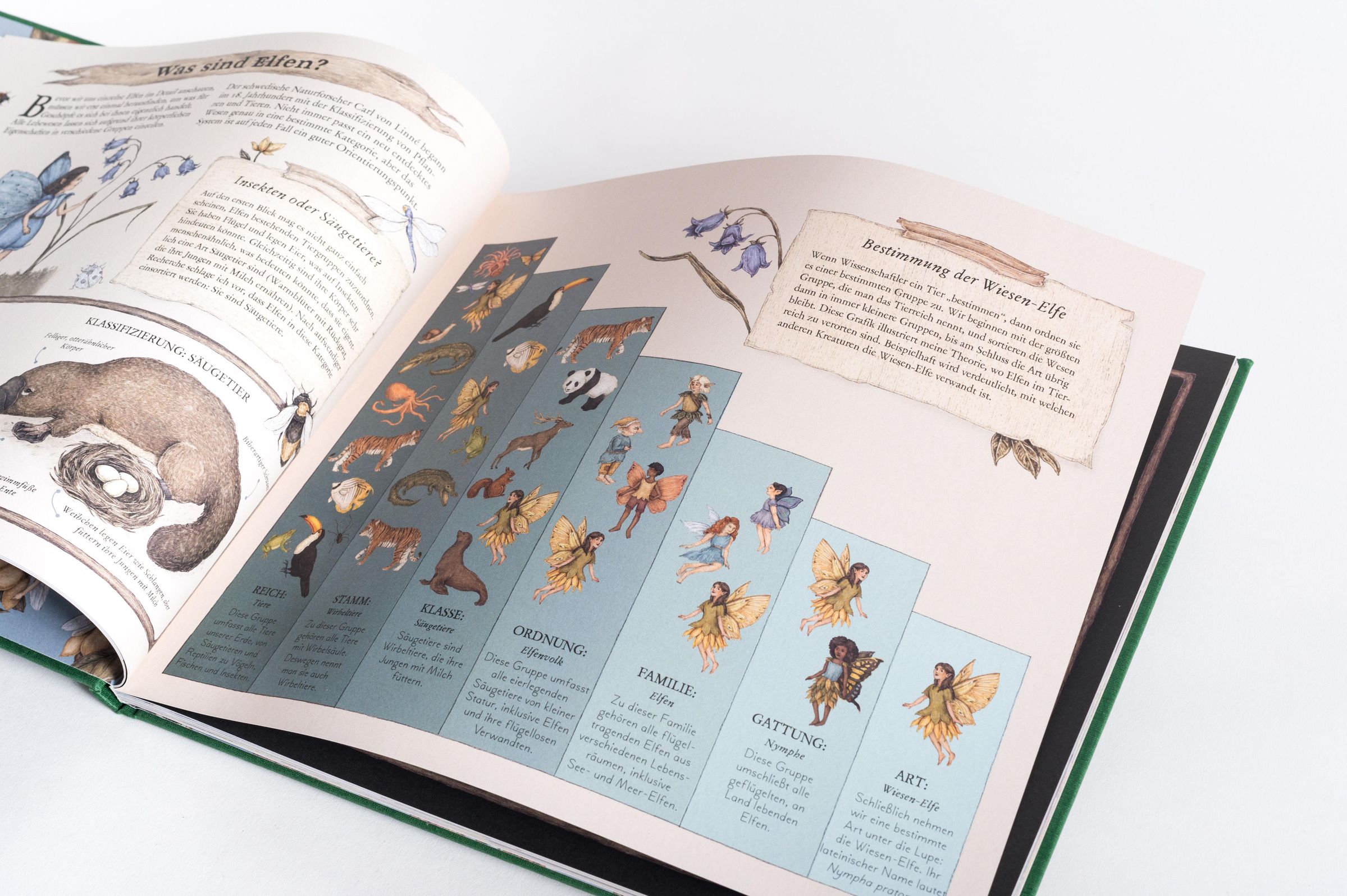 Kleine Naturgeister leben verborgen vor unseren Augen überall um uns herum. Was sind sie und wo finden wir sie? Diese und viele weitere Fragen beantwortet das vollständig illustrierte Handbuch aus den 1920er-Jahren, das von einer angesehenen Botanikerin, Professorin Arbor, für ihre Patentochter Annabelle zusammengestellt wurde und nun erstmals der Öffentlichkeit präsentiert wird. Das Buch zeigt Fotos und Skizzen der Botanikerin und beschreibt die geheime und wichtige Rolle der Elfen in der Natur. Diese geheimnisvollen Wesen unterstützen Pflanzen, Blumen und Tiere - unbemerkt von unseren Augen: Sie überprüfen jeden Morgen die Blumen, um sicherzustellen, dass die Pflanzen genug Tau haben, helfen den Blumen, zum richtigen Zeitpunkt und in der gewünschten Farbe zu blühen, errichten jeden Frühling einen Glockenblumenwald, befreien den Waldboden von Blättern und abgebrochenen Zweigen, helfen den Jahreszeiten beim Kommen und Gehen und pflegen Bäume gesund.