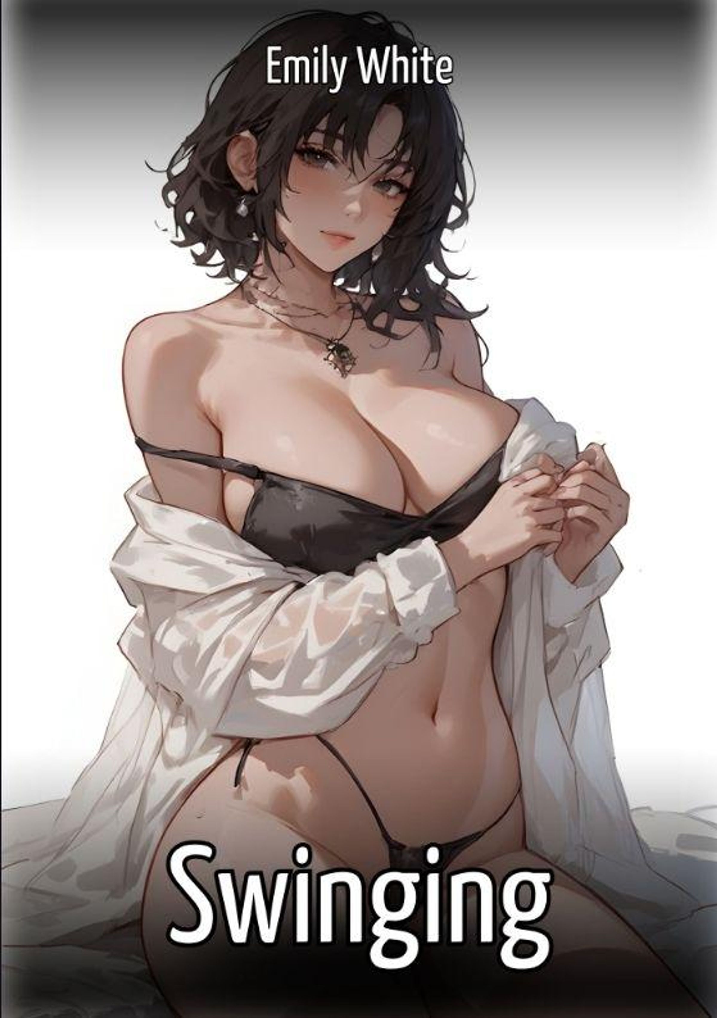 Beachte den Text: "Emily White" oben und "Swinging" unten. Illustration einer Frau in Unterwäsche mit offenem Hemd., Buch