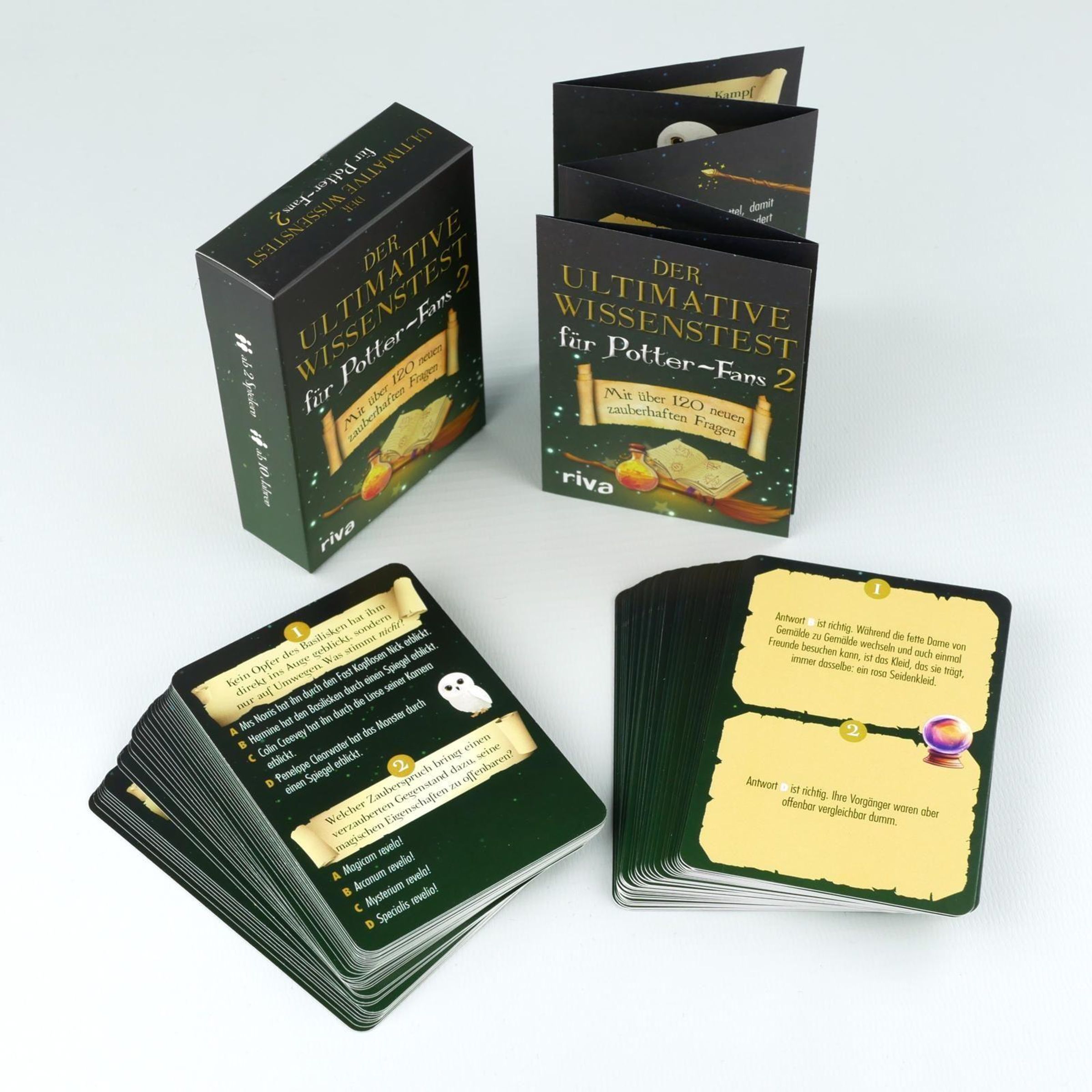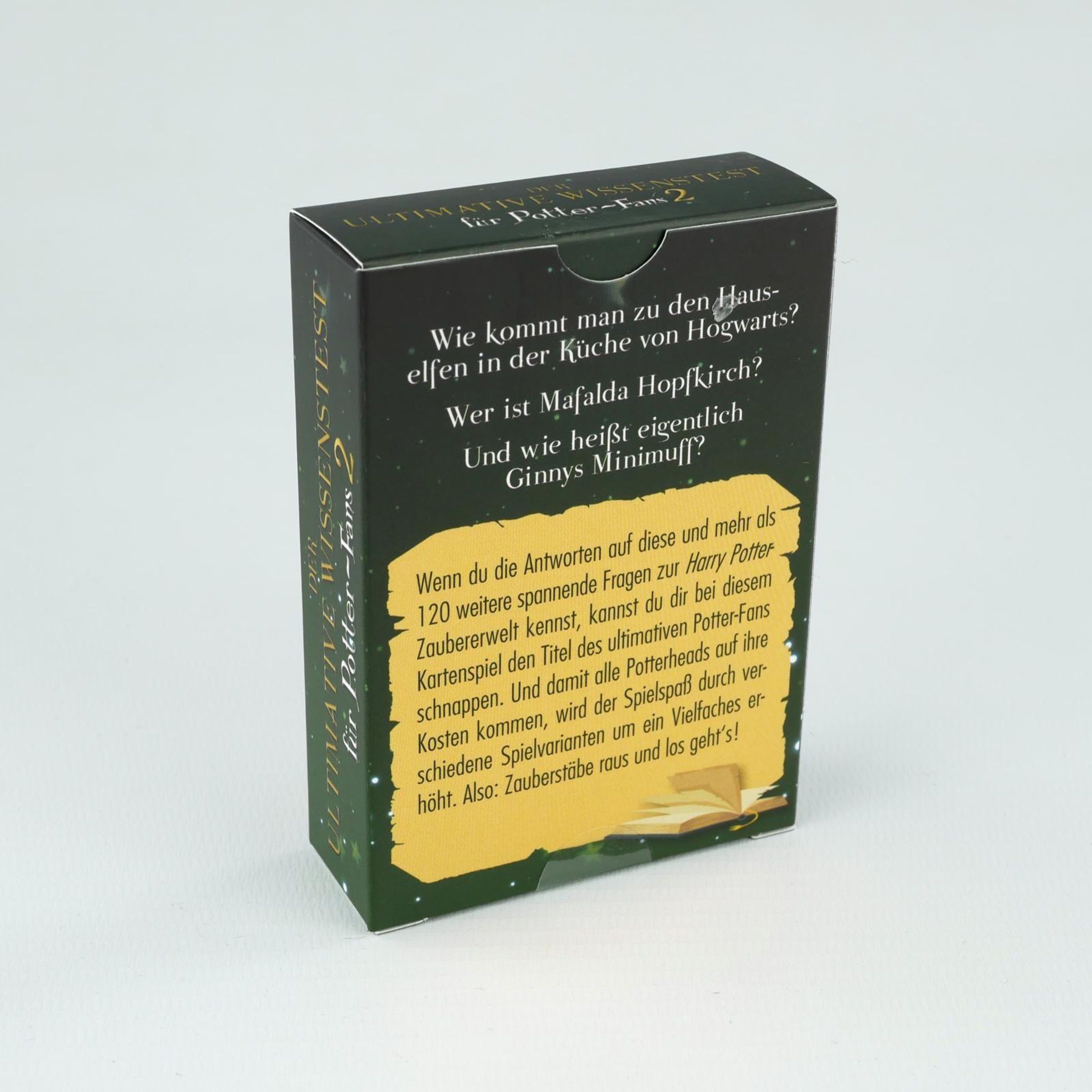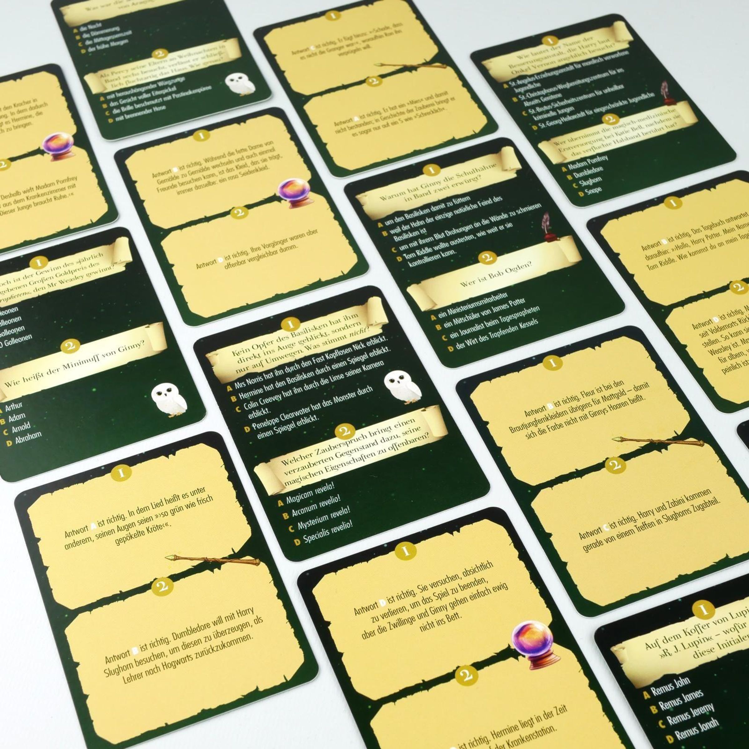 Wenn du die Antworten auf diese und mehr als 120 weitere spannende Fragen zur Harry-Potter-Zaubererwelt kennst, kannst du dir bei diesem Kartenspiel den Titel des ultimativen Potter-Fans schnappen. Und damit alle Potterheads auf ihre Kosten kommen, wird der Spielspaß durch verschiedene Spielvarianten um ein Vielfaches erhöht. Also: Zauberstäbe raus und los geht's!