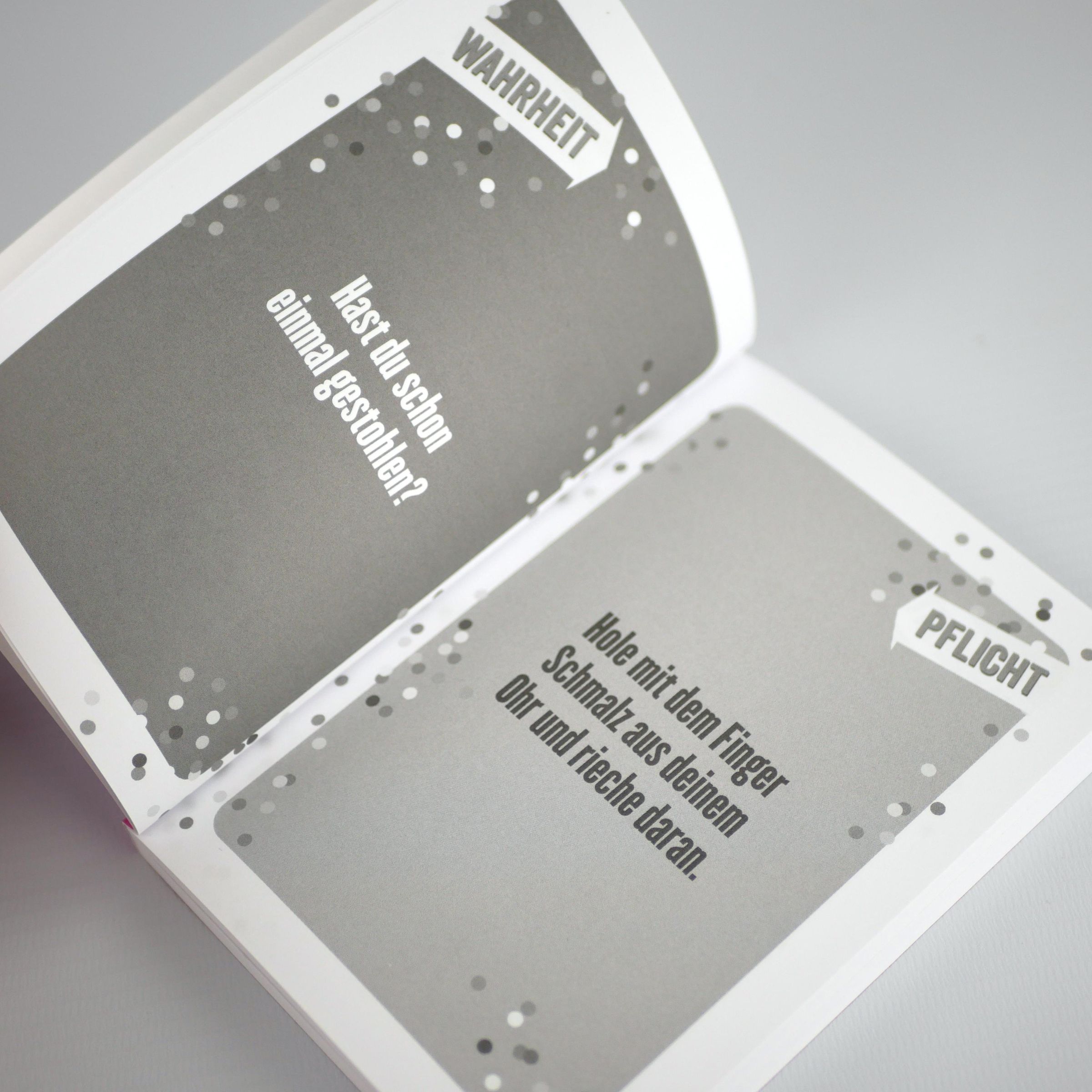 Wahrheit oder Pflicht ist DER Klassiker unter den Partyspielen. Diese Edition eigens für Kinder ist ohne große Vorbereitung der perfekte Begleiter für jeden Kindergeburtstag, Klassenfahrt, Ausflug oder einfach einen langweiligen Nachmittag zu Hause. Zahlreiche witzige Fragen und spannende Aufgaben sorgen nicht nur für Herzklopfen und Lachtränen, sondern ermöglichen es den Kindern auch, etwas Neues auszuprobieren, über sich hinauszuwachsen oder ganz einfach Freundschaften zu knüpfen.