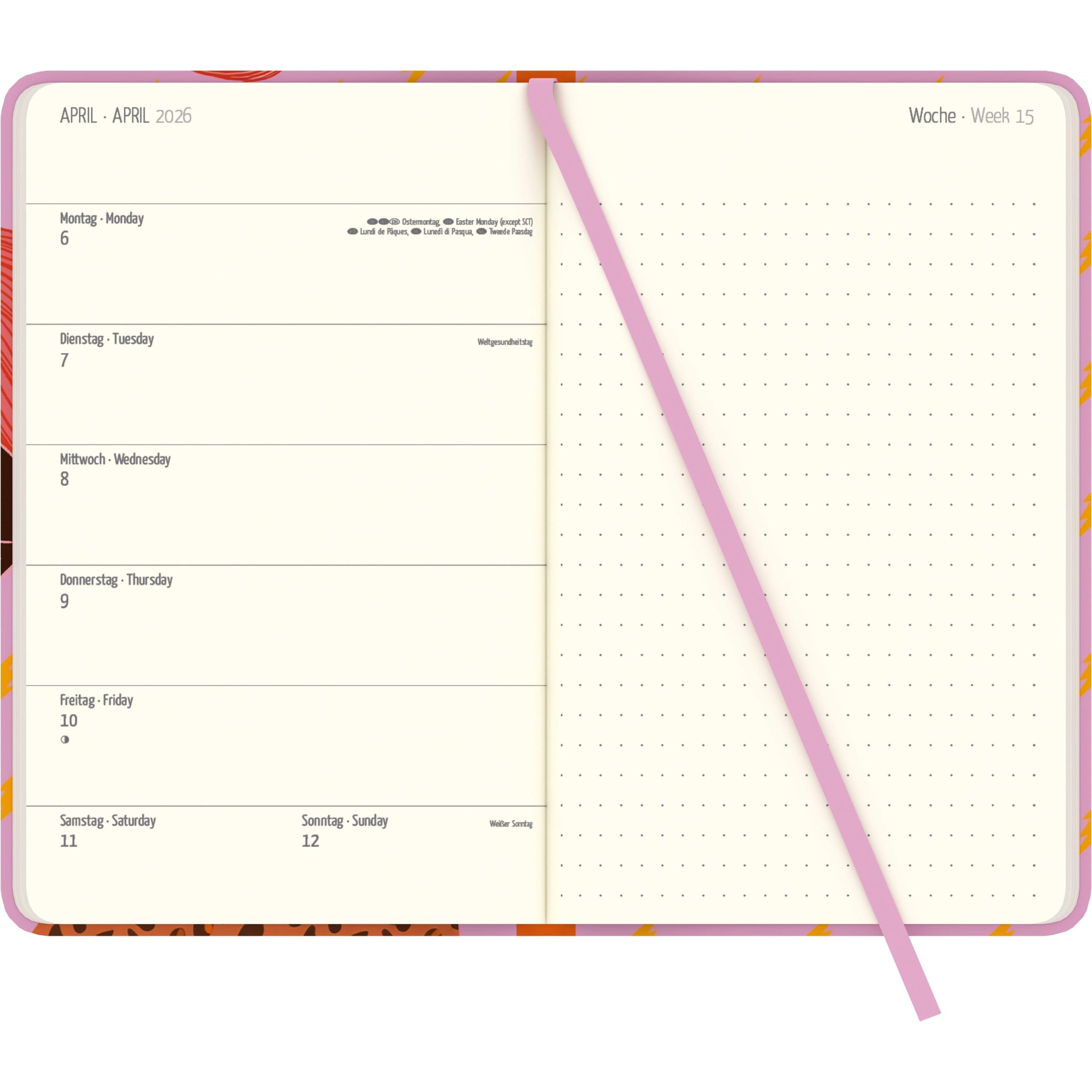 Emmy Lupin Wochen-Notizkalender groß 2026 - Taschen-Kalender 13x21 cm - mit Verschlussband & Falttasche - Weekly