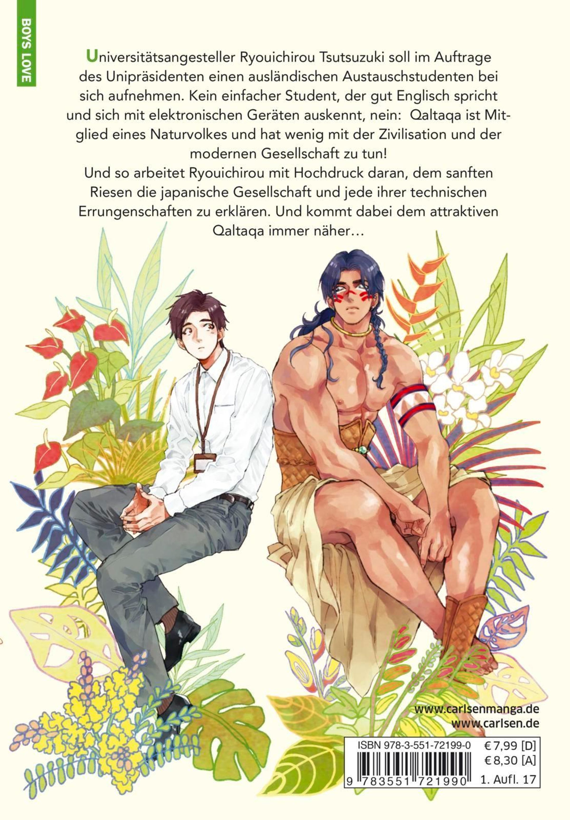 Qaltaqa, stolzer Krieger aus dem Stamme der Lutah, wird eingeladen, an der renommierten Kojo-Universität in Japan zu studieren. Gerne nimmt er die Einladung an, aber seinem Betreuer Ryoichiro Tsutsuzuki wird schnell klar, dass der sanfte Riese mit den Gepflogenheiten Japans schlecht zurechtkommt und er Qaltaqa Hand in Hand durch den Uni-Alltag begleiten muss. Doch auch Qaltaqa sieht Handlungsbedarf bei seinem Gastgeber, denn Ryoichiros Geist und Körper agieren nicht zusammen und er muss wieder lernen, dass er seinen Instinkten vertrauen kann. Und Qaltaqa ist genau der richtige Mann, um diese bei ihm zu wecken - aufgepasst, Ryoichiro, Qaltaqa ist auf dem Liebes-Pfad!