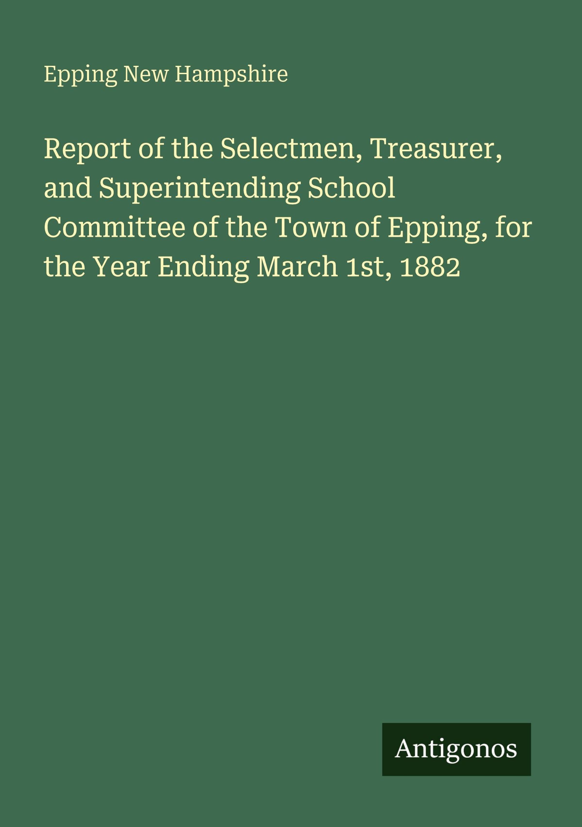 Report of the Selectmen, Treasurer, and Superintending School Committee of the Town of Epping, for the Year Ending March 1st, 1882
