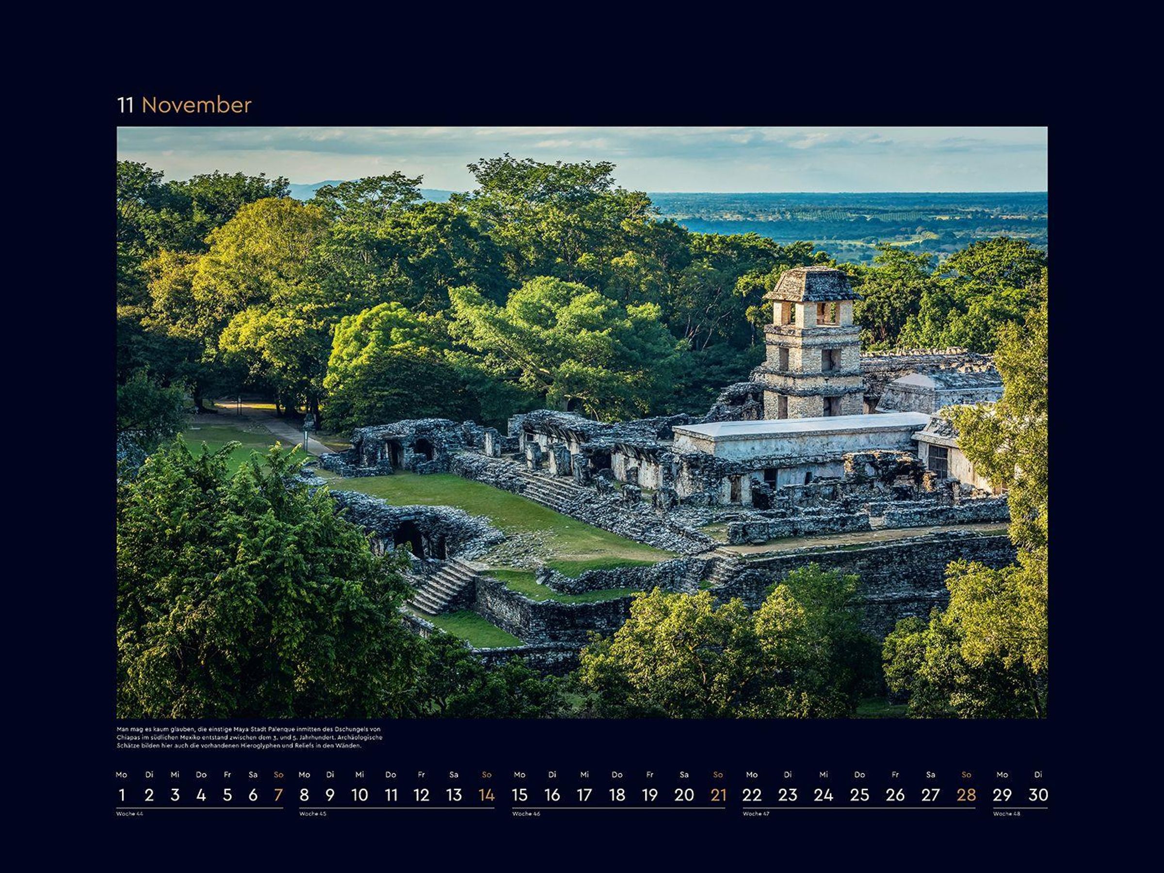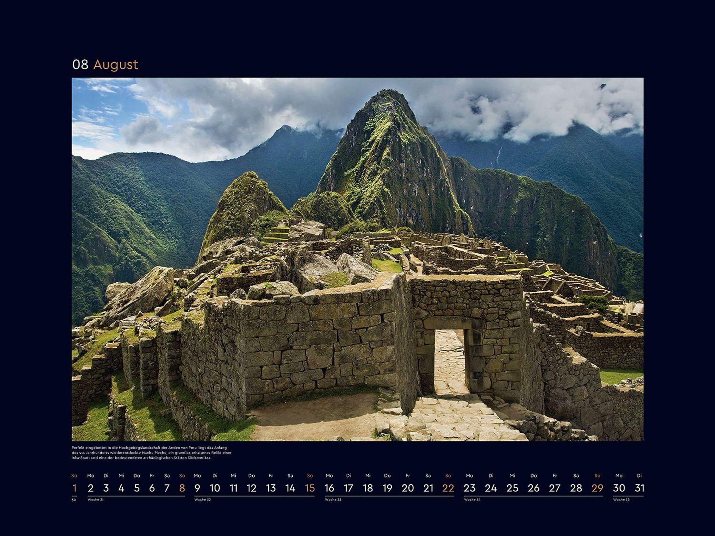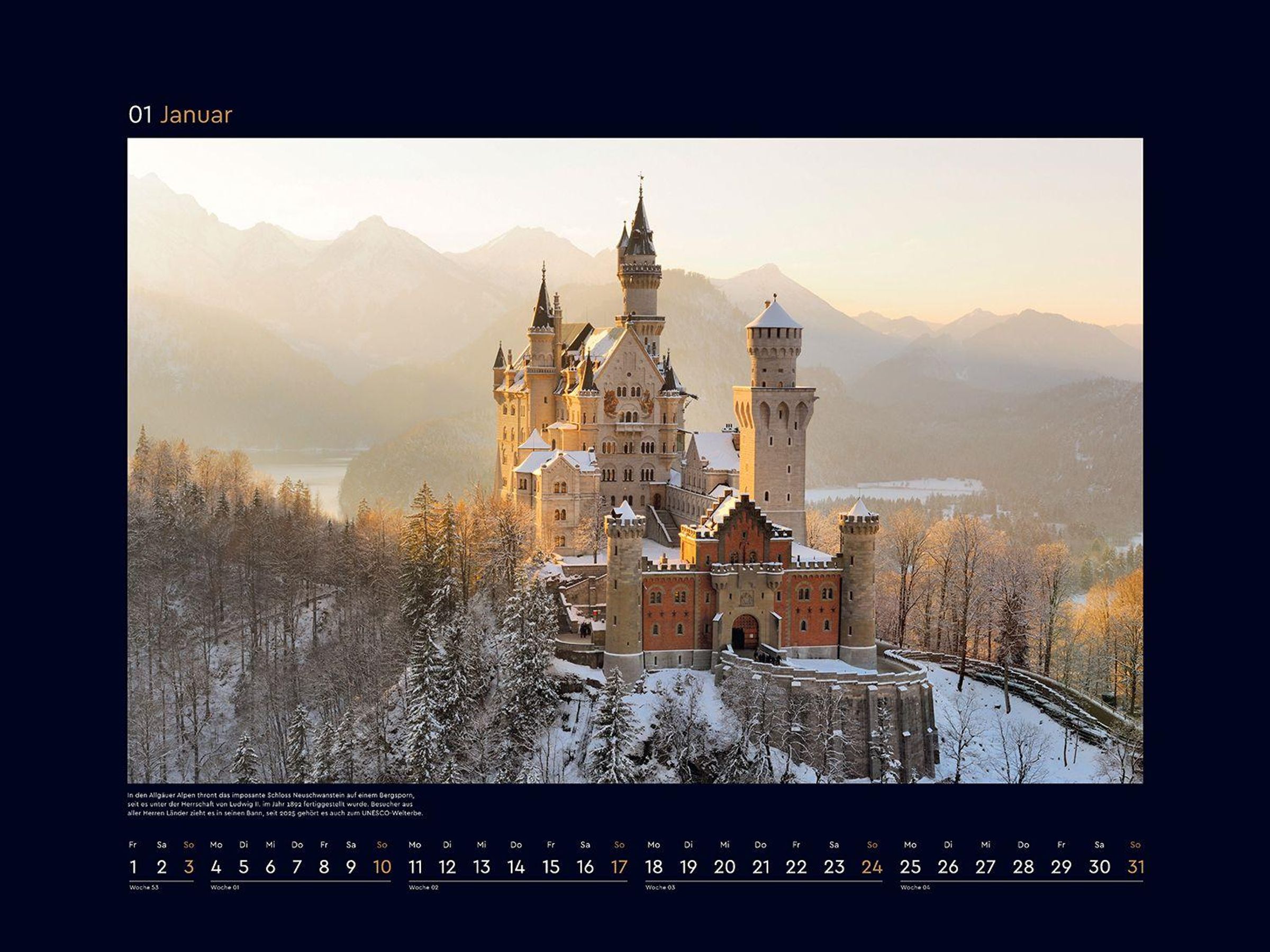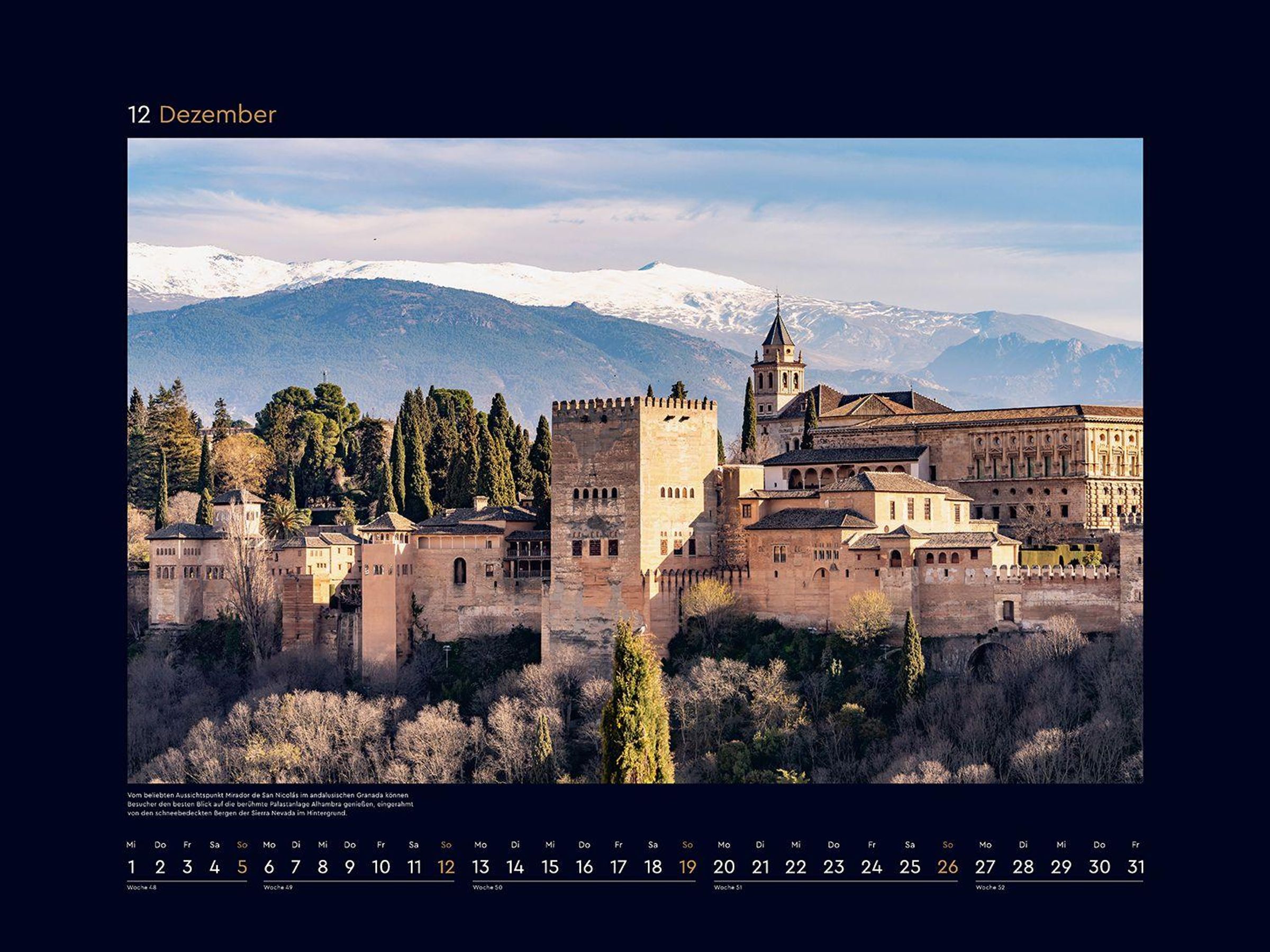 Monat für Monat wartet ein bildstarkes Highlight auf Entdeckung, und ein ansprechendes Kalendarium sorgt für optimalen Nutzen. Die mattschwarzen Rahmen bilden einen starken Kontrast zu den brillanten Fotografien.