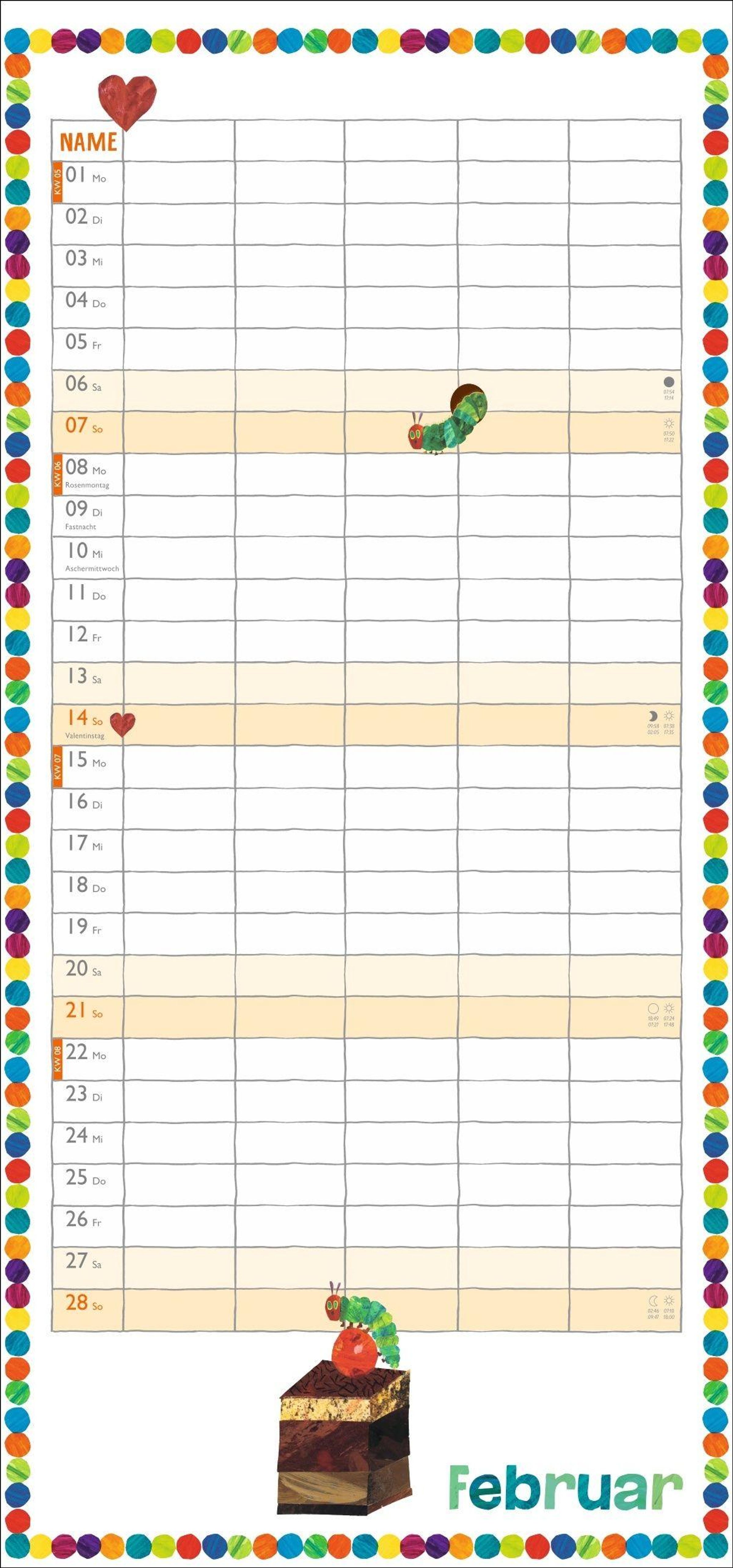Frisst garantiert keine Termine: Die kleine Raupe Nimmersatt im Familienkalender 2027
