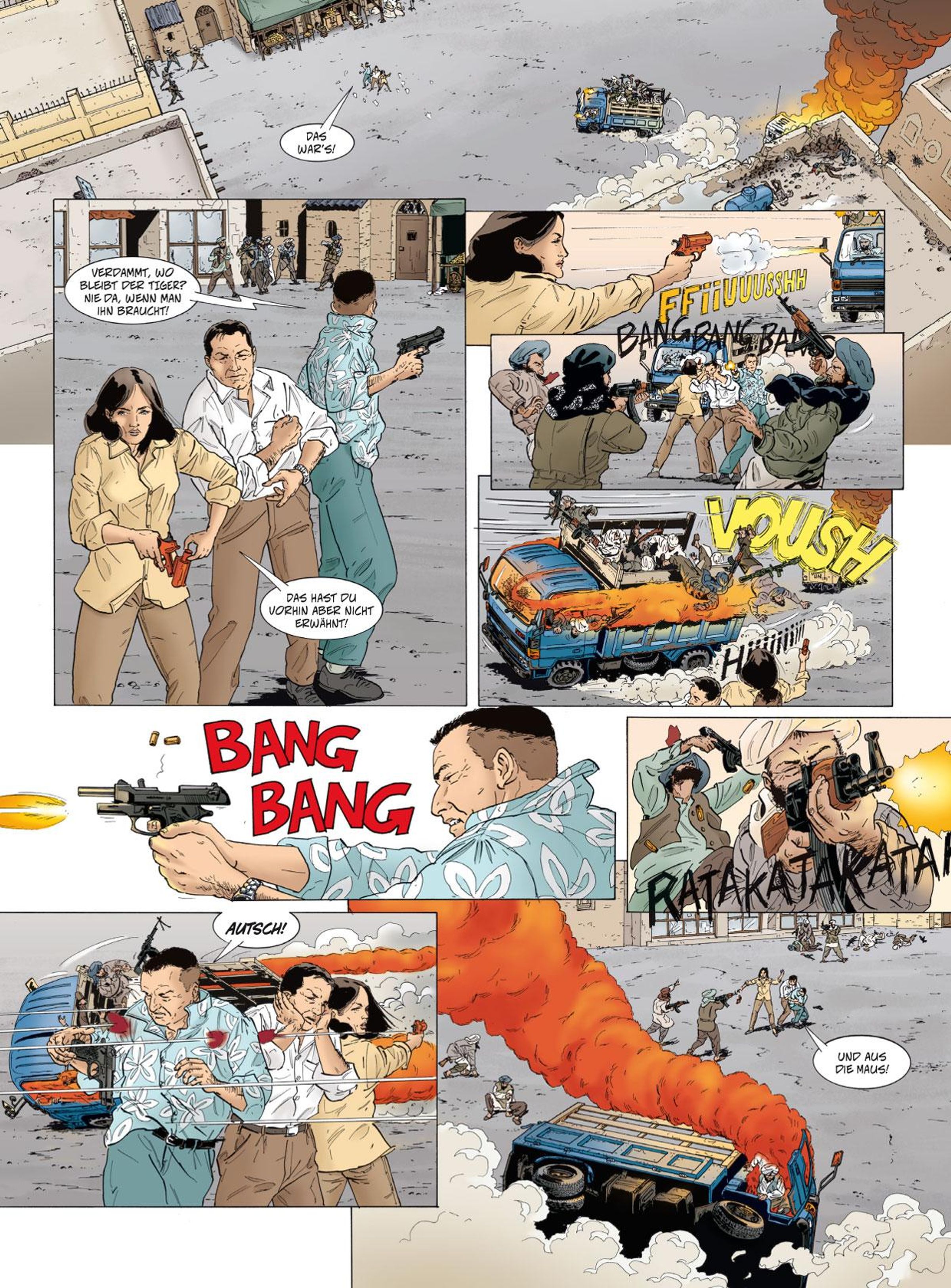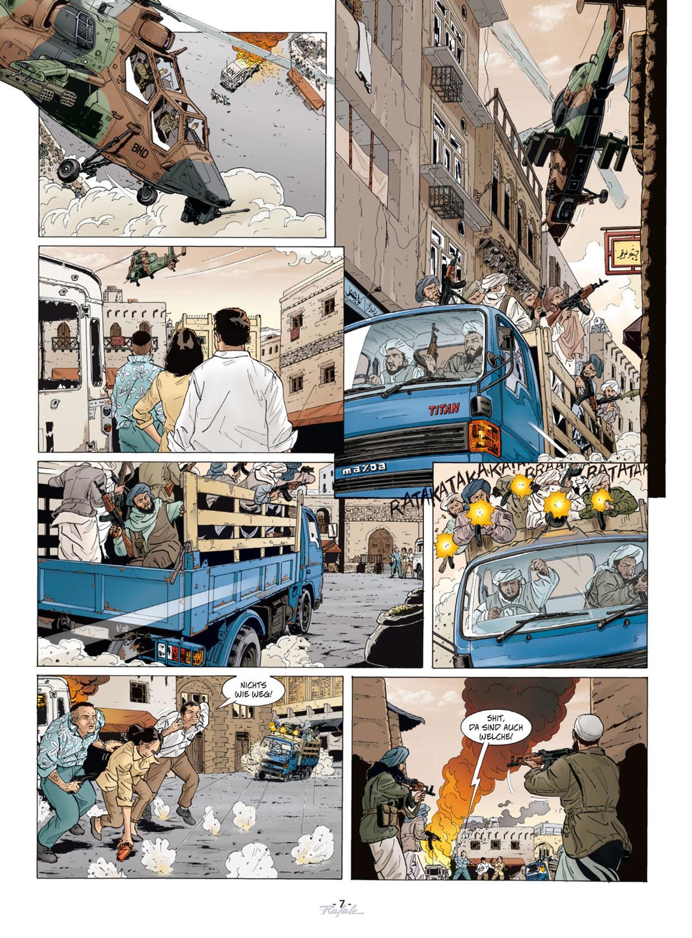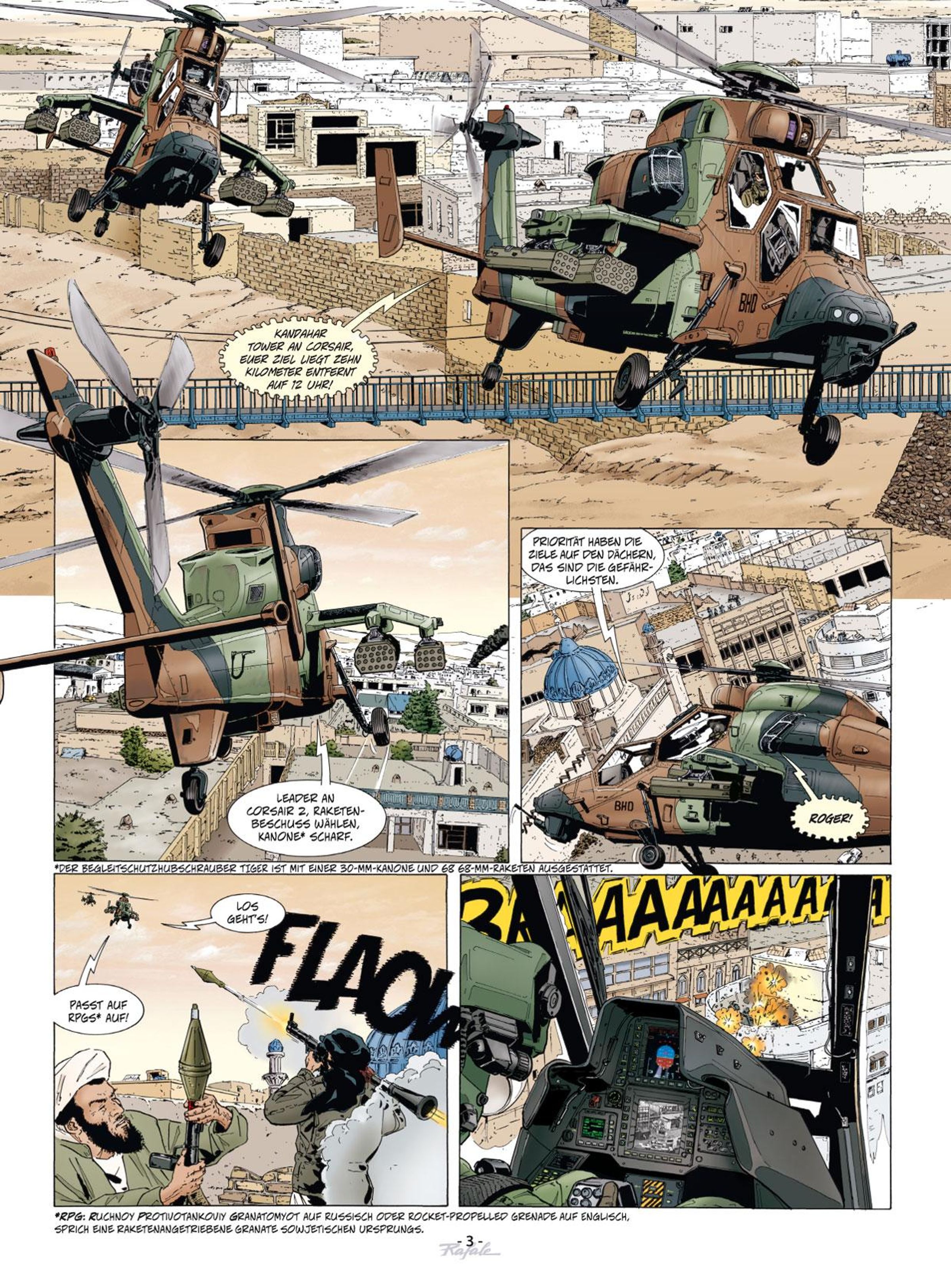 Khandahar ... Tom Nolane, Jessica Nate und ihre Freunde vom Geschwader 1 / 7 Provence sitzen diesmal wirklich in der Falle. Natürlich werden sie sich befreien, aber zu welchem Preis? Und wer ist dieses geheimnisvolle Kommando 801, das im afghanischen Grenzgebiet operiert? Wird es den sechs französischen Elitesoldaten des Fallschirmjäger-Kommandos, die den Satelliten bewachen, gelingen, ihnen zu entkommen? Was den Quantenprozessor angeht, so hat die Gruppe Taliban mittlerweile begriffen, dass es sich um eine Technologie handelt, die Gold wert ist, und beschließen, ihn an den weltweit führenden Waffenhändler zu verkaufen. Doch da viel Geld auf dem Spiel steht, greift dieser zu drastischen Mitteln, um den Prozessor aus Afghanistan herauszuholen. Für Tom, Jessica und die gesamte 1 / 7-Besatzung, die sich auf die Spur eines ebenso schnellen wie listigen Gegners begeben, beginnt eine Verfolgungsjagd mit Mach 1.6, die sie von den afghanischen Bergen bis vor die Tore der iranischen Wüste führt ...