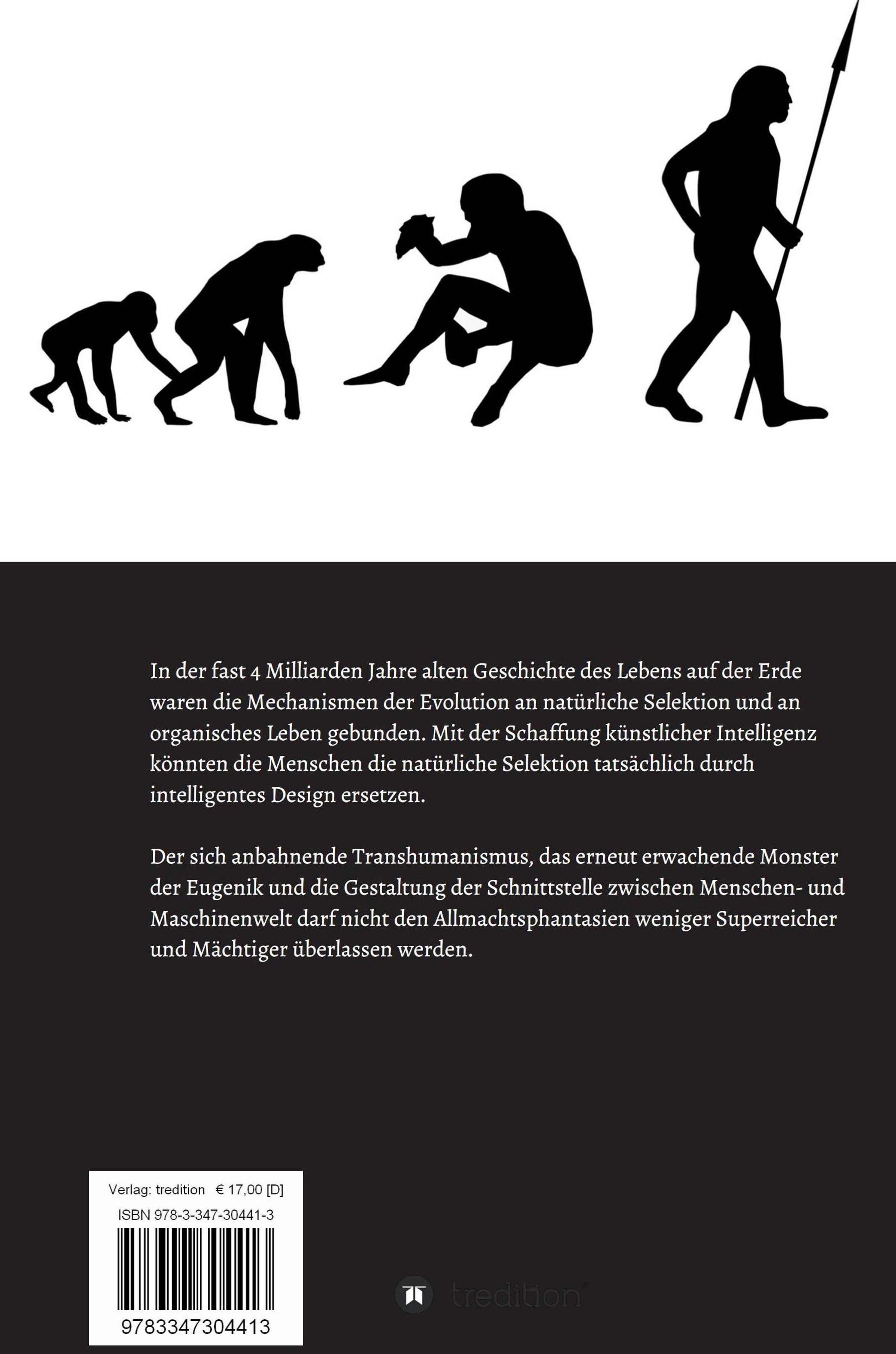 In der fast 4 Milliarden Jahre alten Geschichte des Lebens auf der Erde waren die Mechanismen der Evolution an natürliche Selektion und an organisches Leben gebunden. Mit der Schaffung künstlicher Intelligenz könnten die Menschen die natürliche Selektion tatsächlich durch intelligentes Design ersetzen. Der sich anbahnende Transhumanismus, das erneut erwachende Monster der Eugenik und die Gestaltung der Schnittstelle zwischen Menschen- und Maschinenwelt darf nicht den Allmachtsphantasien weniger Superreicher und Mächtiger überlassen werden.