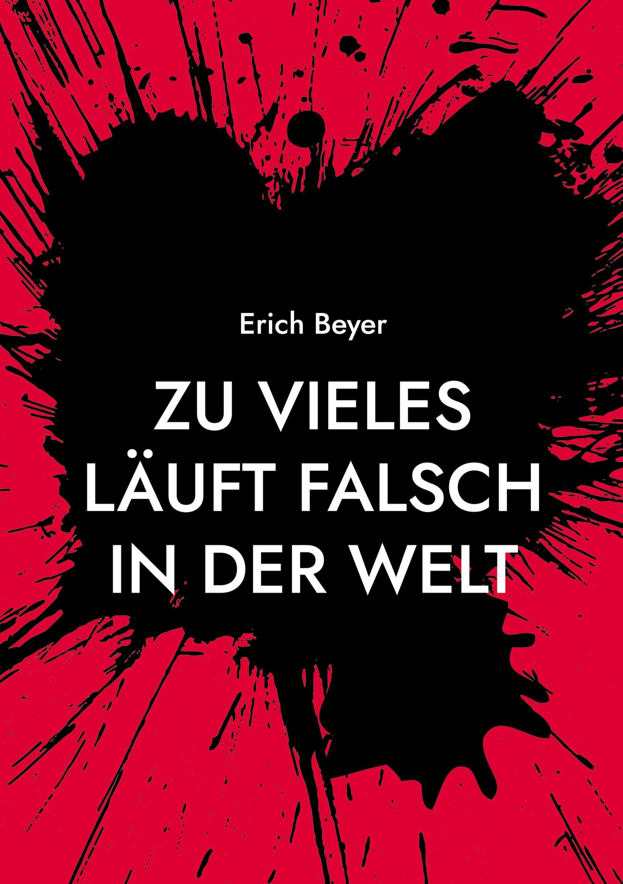 Titel: "Zu Vieles Läuft Falsch in der Welt". Autor: Erich Beyer. Schwarzer Farbklecks auf rotem Hintergrund., Buch