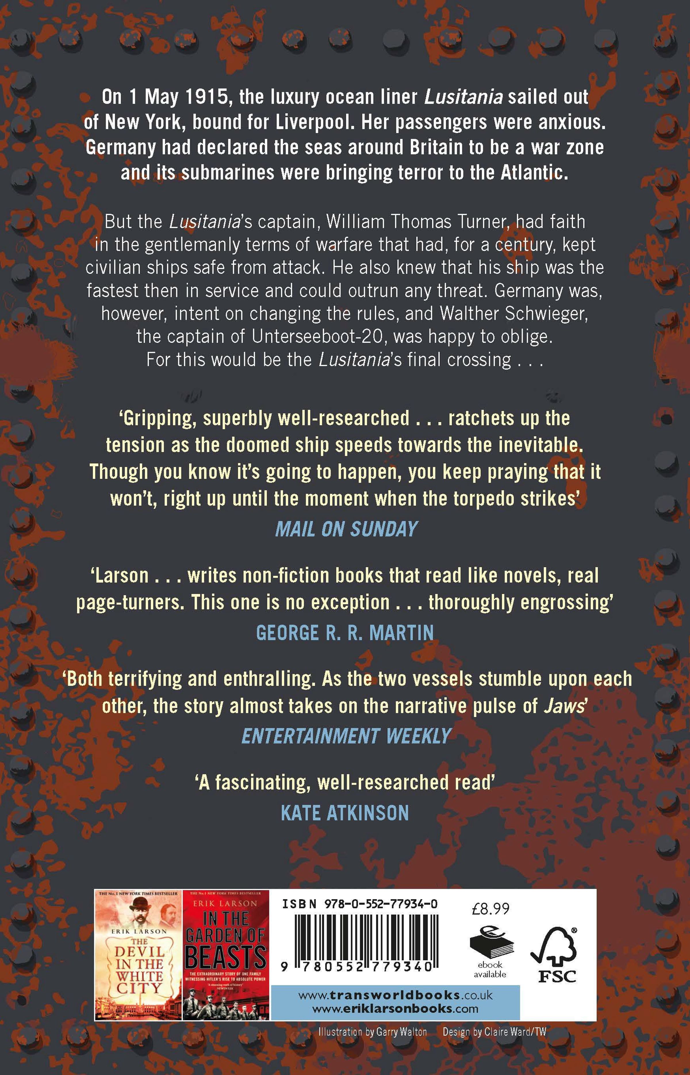 It is a story that many of us think we know but don't, and Erik Larson tells it thrillingly, switching between hunter and hunted. Full of glamour, mystery, and real-life suspense, Dead Wake brings to life a cast of evocative characters, including the US President Wilson, a man lost to grief, dreading the widening war but also captivated by the prospect of new love. Gripping and important, Dead Wakecaptures the sheer drama and emotional power of a disaster that helped place America on the road to war.
