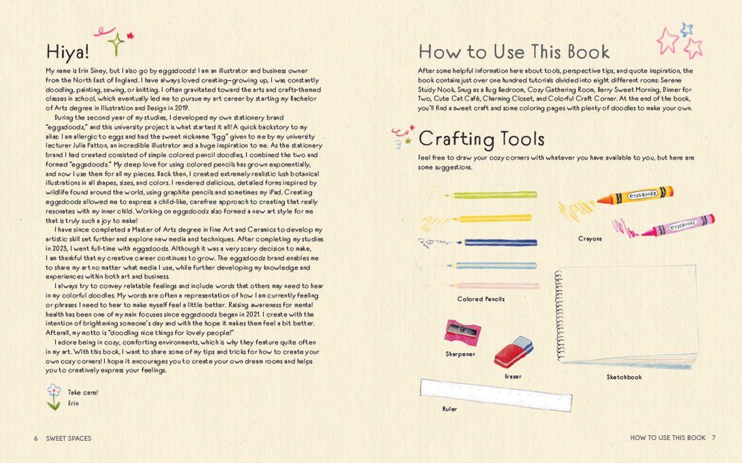 In Sweet Spaces zeigt Erin Siney Schritt für Schritt, wie mit einem lockeren Doodle-Stil bezaubernde Innenräume im angesagten Coquette-Stil entstehen. Einfache Zeichenübungen, kombinierbare Motive und viele Detailideen laden dazu ein, eigene Wohlfühlräume zu gestalten. Ergänzt durch kreative Einblicke, Inspirationen und verspielte Extras hilft das Buch, einen persönlichen Stil zu entwickeln und süße Räume lebendig werden zu lassen.