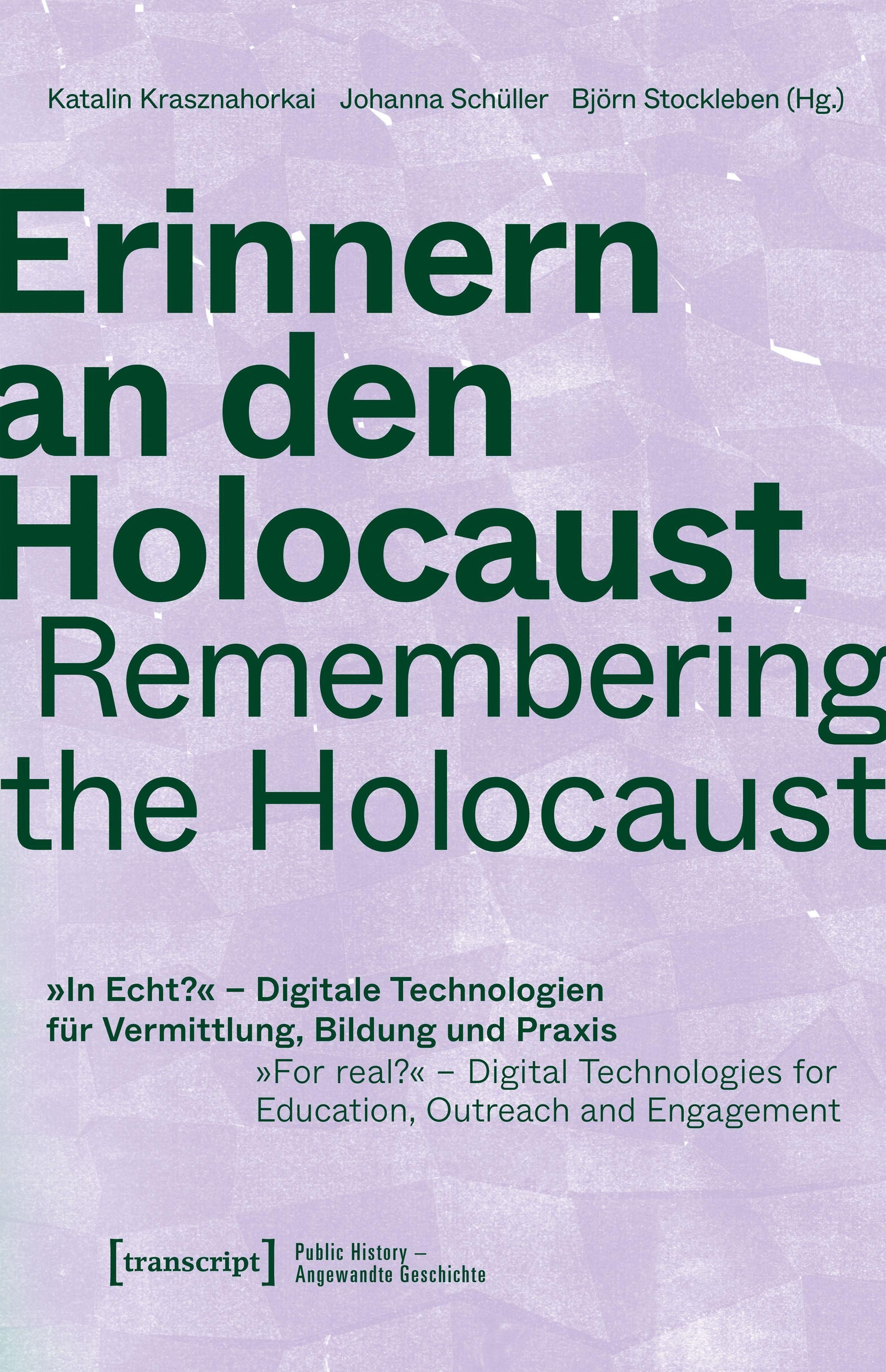 Titel: Erinnern an den Holocaust. Thema: Digitale Technologien für Vermittlung. Hintergrund: Lila mit Mustern., Buch