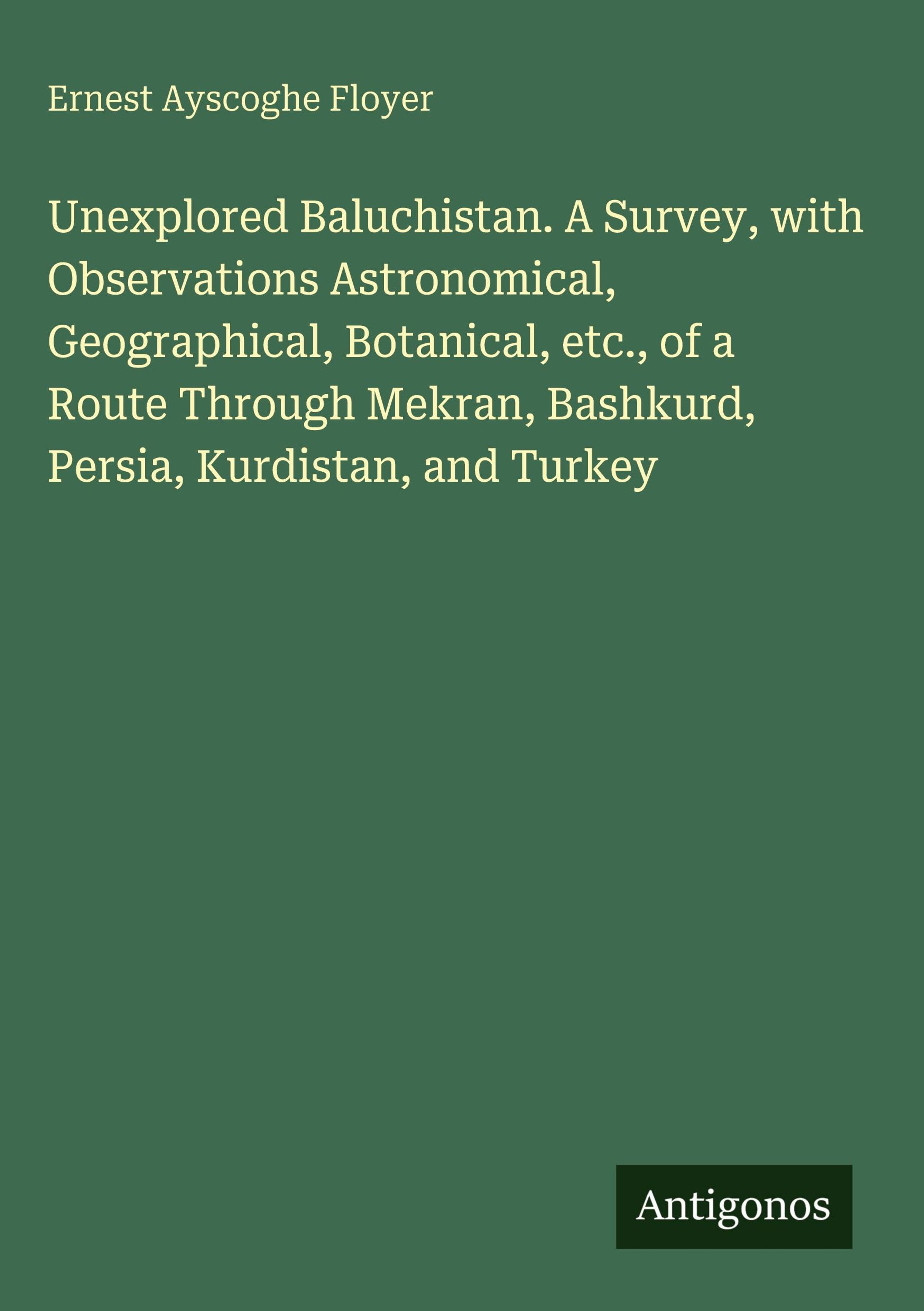 Unexplored Baluchistan. A Survey, with Observations Astronomical, Geographical, Botanical, etc., of a Route Through Mekran, Bashkurd, Persia, Kurdistan, and Turkey