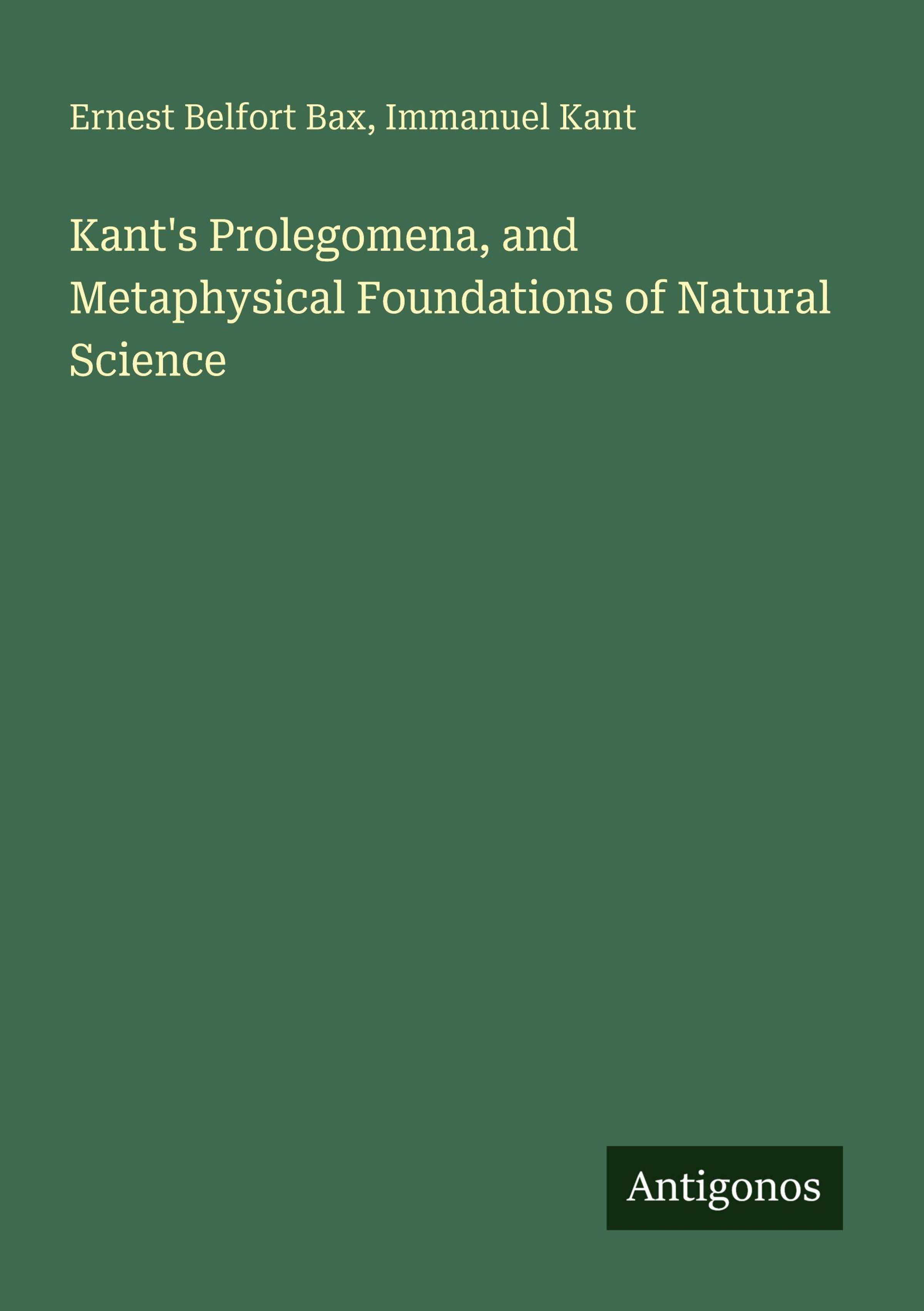 Ernest Belfort Bax: Kant's Prolegomena, and Metaphysical Foundations of Natural Science, Kartoniert / Broschiert