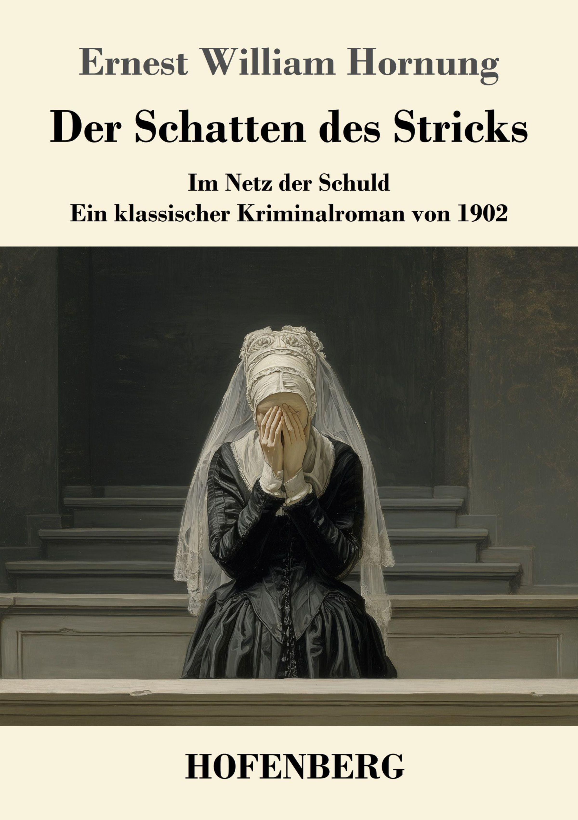 „Der Schatten des Stricks“ von Ernest William Hornung. Frau in Schwarz und Weiß sitzt mit bedecktem Gesicht., Buch